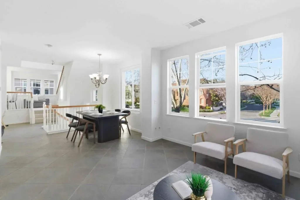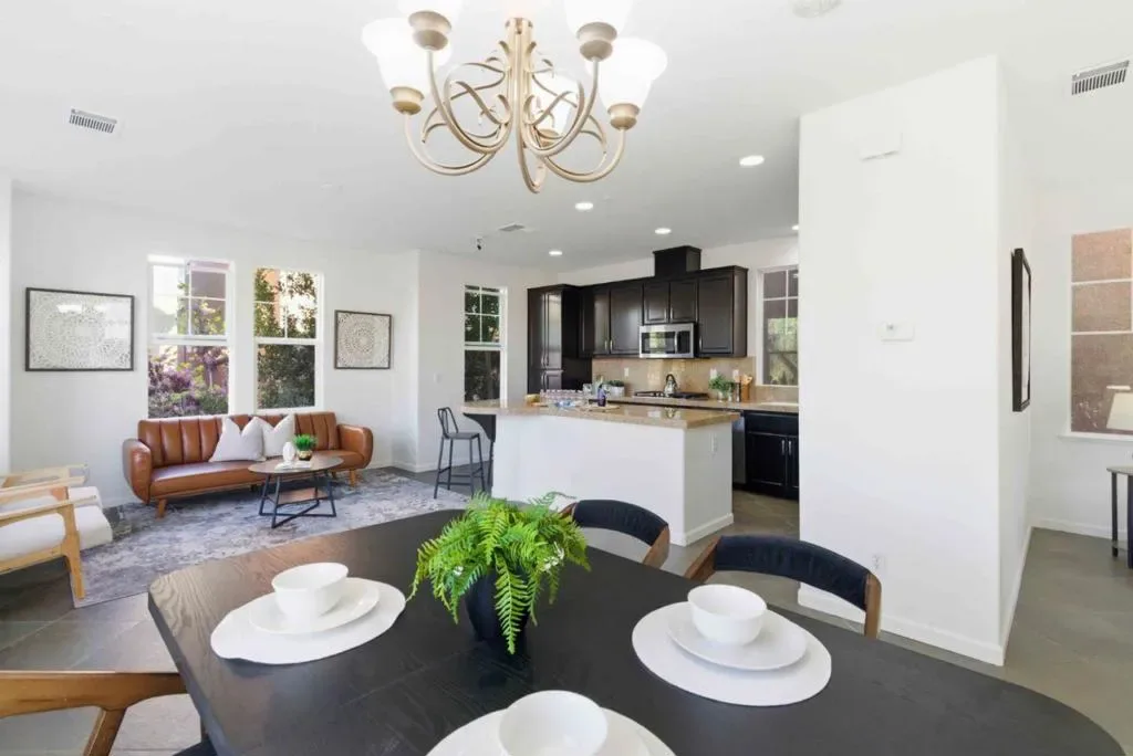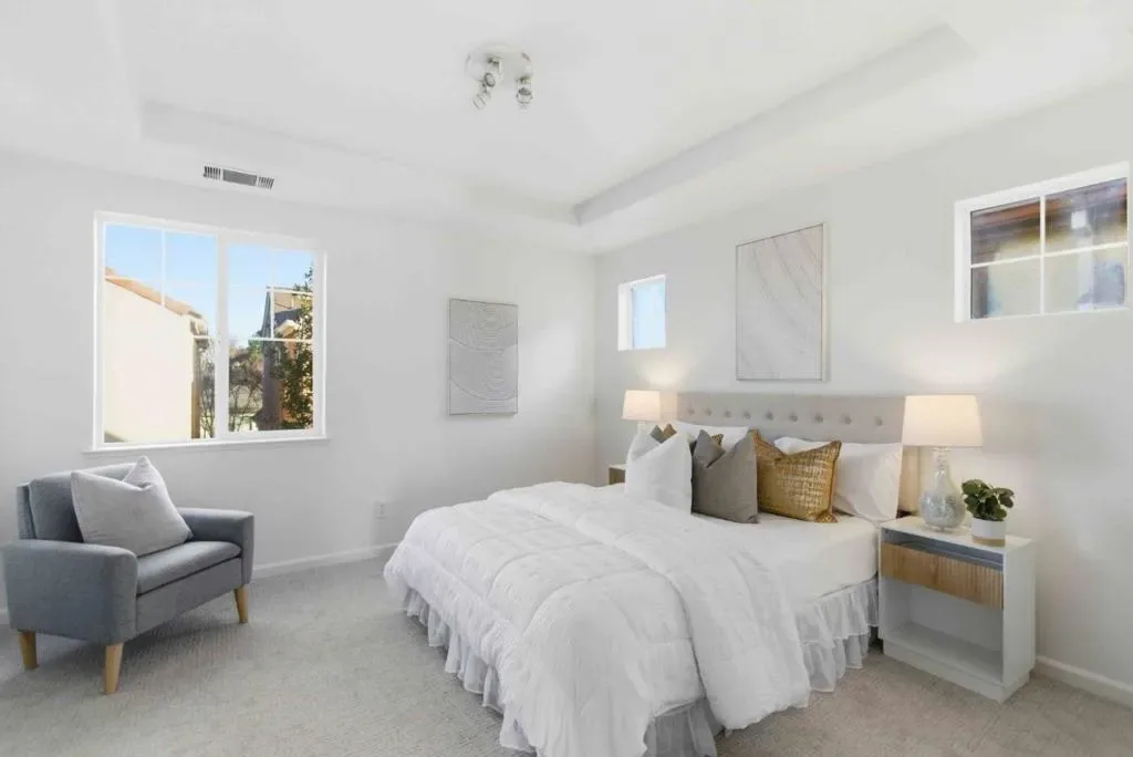 Welcome to this charming home located in the vibrant city of Santa Clara. This spacious residence offers 1,590 sq ft of comfortable living space, featuring three bedrooms and three full bathrooms. Positioned within the Santa Clara Unified School District, it is a practical choice for families. The kitchen is a chef’s delight, boasting a range of modern appliances including a gas cooktop, built-in oven, microwave, and refrigerator, complemented by an island and a convenient 220-volt outlet. The kitchen seamlessly flows into the family room, creating an inviting atmosphere for gatherings. Enjoy meals in the dining area, which features a breakfast bar and additional dining space in the living room. The home is equipped with central AC and features diverse flooring options like carpet, slate, tile, and wood. Relax by the fireplace or enjoy the high ceilings and walk-in closet, adding to the homes appeal. The laundry area is conveniently located in the utility room and includes a washer and dryer. A community pool and a two-car garage round out the amenities.
