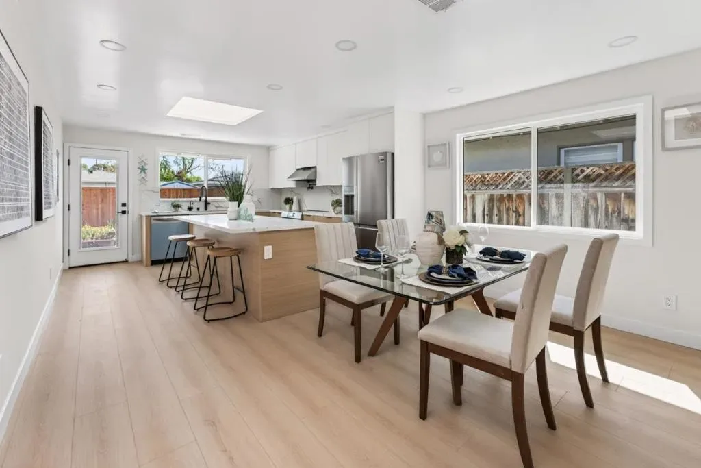Experience the pinnacle of modern living, a stunningly reimagined 3 bedroom and 3 bathroom residence in the heart of Santa Clara. This contemporary masterpiece is flooded with natural lights from multiple skylights highlighting the elegant wide-plank flooring and designer finishes throughout. The heart of the home is a gourmet chef’s kitchen featuring a massive island with built in microwave and wine cooler. Sleek flat-panel cabinetry and top of the line stainless steel appliances and Induction range (gas connection also available). The primary suite serves as a private sanctuary offering a custom walk-in closet with custom shelves and built-in safe. Indulge in spa-like bathroom with showcase floating vanities, frameless glass shower with rainfall heads, heated towel rack. Multi function bidet toilets & heated tile floor in all bathrooms. Huge finished attic with over 660 sqft of space for your hobby or home office. New electrical wires, outlet and LED lighting through out, New 50 years warranty roof, new copper plumping. Dedicated 50 amp Tesla Charger in garage for you to take advantage of cheap Santa Clara Electric. New tankless water heater, new whole house water filter, hot & cold faucet dispensing Alkaline Drinking water. All remodeling work was done with permit.