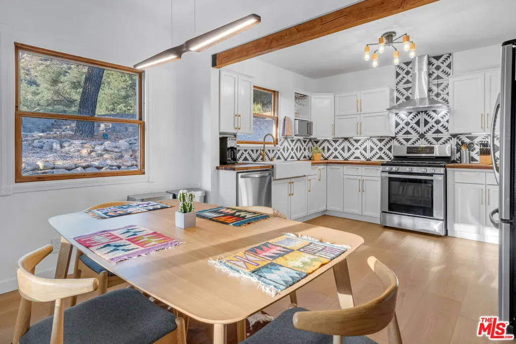 Experience the ultimate blend of serene mountain living and urban convenience at this rare, private creekside sanctuary in the San Gabriel Mountains. This exceptional property, perched on a sprawling 27,708 sq. ft. LCA22-zoned lot, offers breathtaking 360-degree mountain views and is surrounded by thousands of acres of national forest. Feel a world away, yet be less than 15 minutes from both the LA Valley and Santa Clarita. This one-of-a-kind property presents a unique opportunity for income generation and multi-generational living with its thoughtfully designed layout and agricultural zoning. The upper main house features a modern open floor plan with a bright living area, vaulted ceilings, and a romantic fireplace. The gourmet kitchen, a perfect fusion of style and function, boasts walnut butcher block countertops, custom backsplash, a farmhouse sink, and designer brass fixtures. The downstairs guest house is an attached, self-contained unit with its own kitchen, oversized full bathroom, and laundry room. A private exterior entry door makes it an ideal income-generating rental or a secluded space for guests. Alternatively, a convenient interior hatch allows you to connect the two levels for a larger primary residence. The property’s LCA22 zoning opens up a world of possibilities for a self-sufficient lifestyle. Recently terraced with multiple levels of retaining walls, the land offers abundant space for vegetable gardens and lush landscaping. A massive, level upper graveled area provides ample room to expand. Use it for additional parking, a storage shed, or leverage the agricultural zoning to create a small farm with the existing chicken and goat pens. This area is also perfect for building a separate ADU, a barn, or horse stables, offering a fantastic opportunity to generate passive income or create a unique living space. Enjoy the outdoor life on one of several decks and porches, or take a refreshing dip in the new cowboy pool. The home features new floors, fresh paint, updated electrical and plumbing, and mini-split AC/heaters in all key living areas. The spectacular, unobstructed views of the San Gabriel Mountains and the gorgeous topography are truly unparalleled in Los Angeles. This is more than just a home, it’s an outdoor lover’s dream and an incredible investment opportunity.