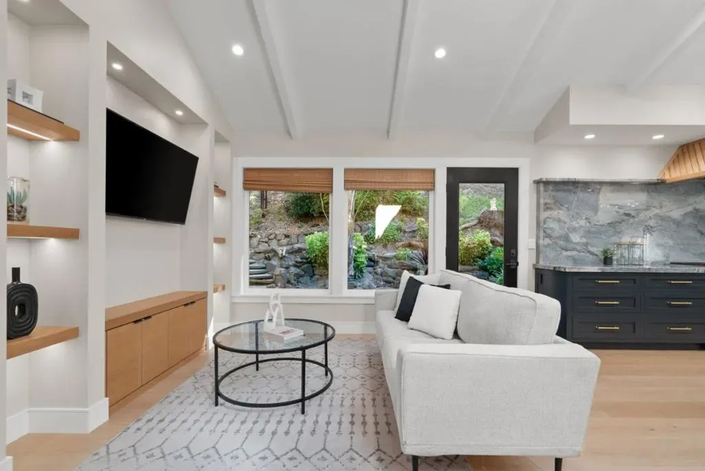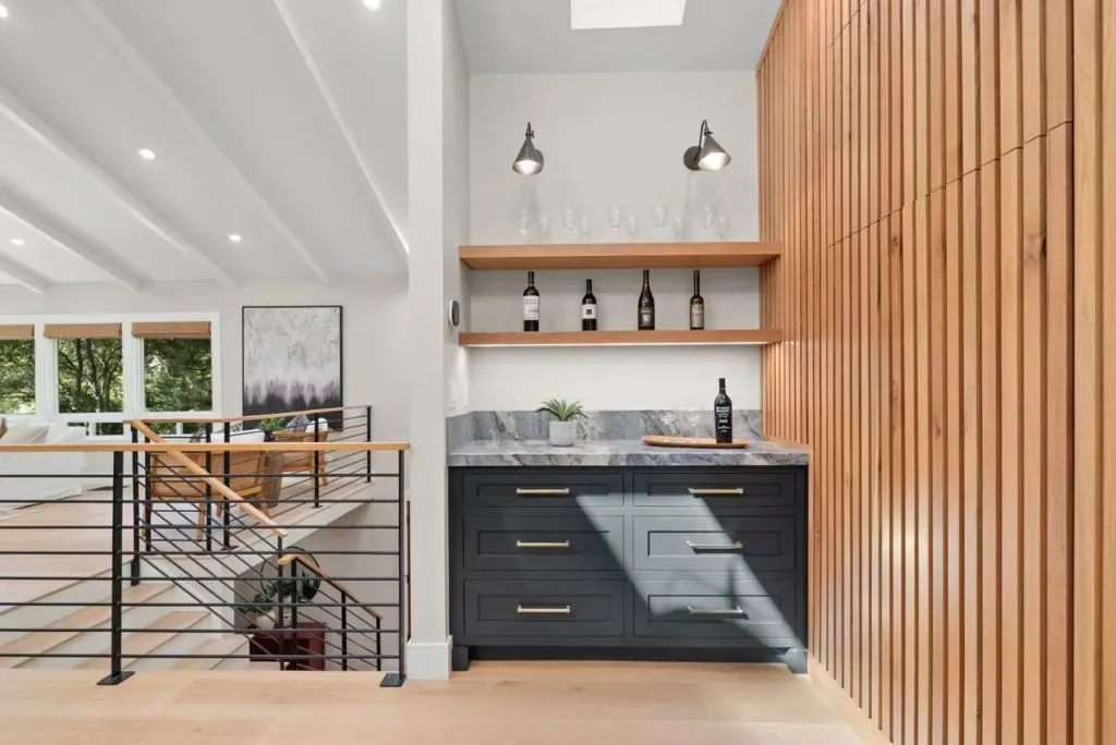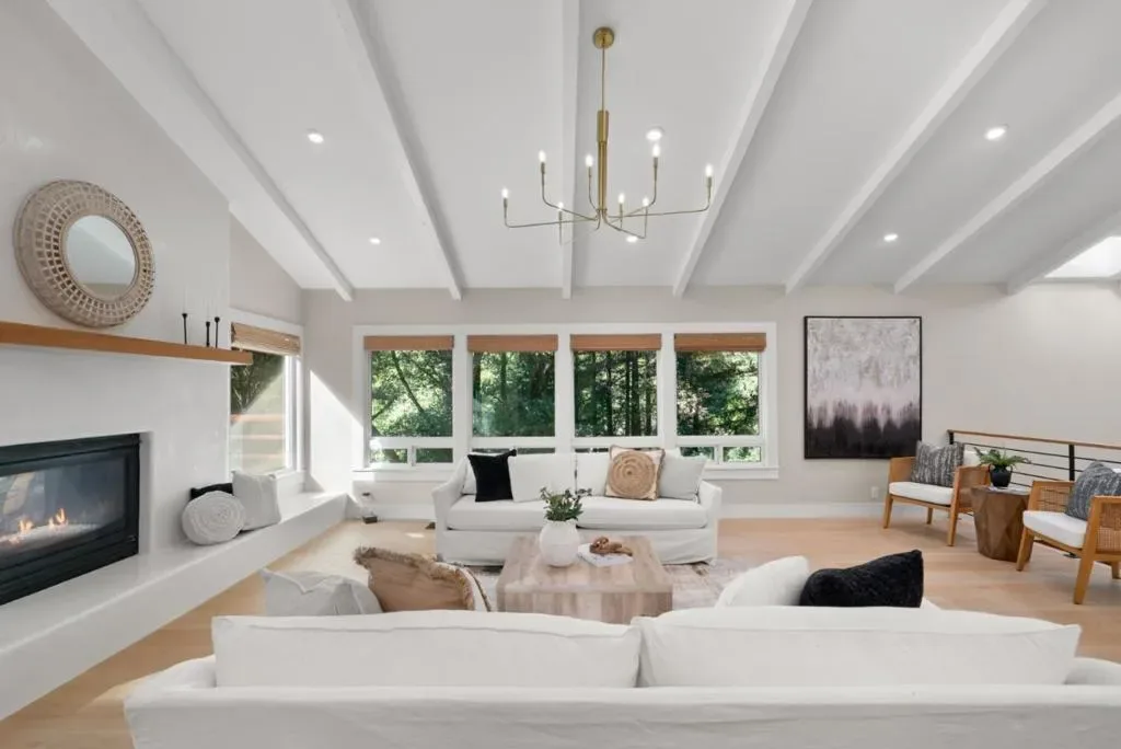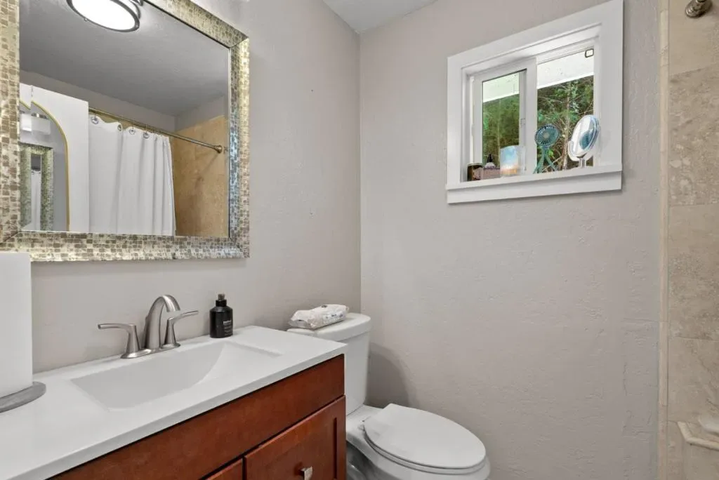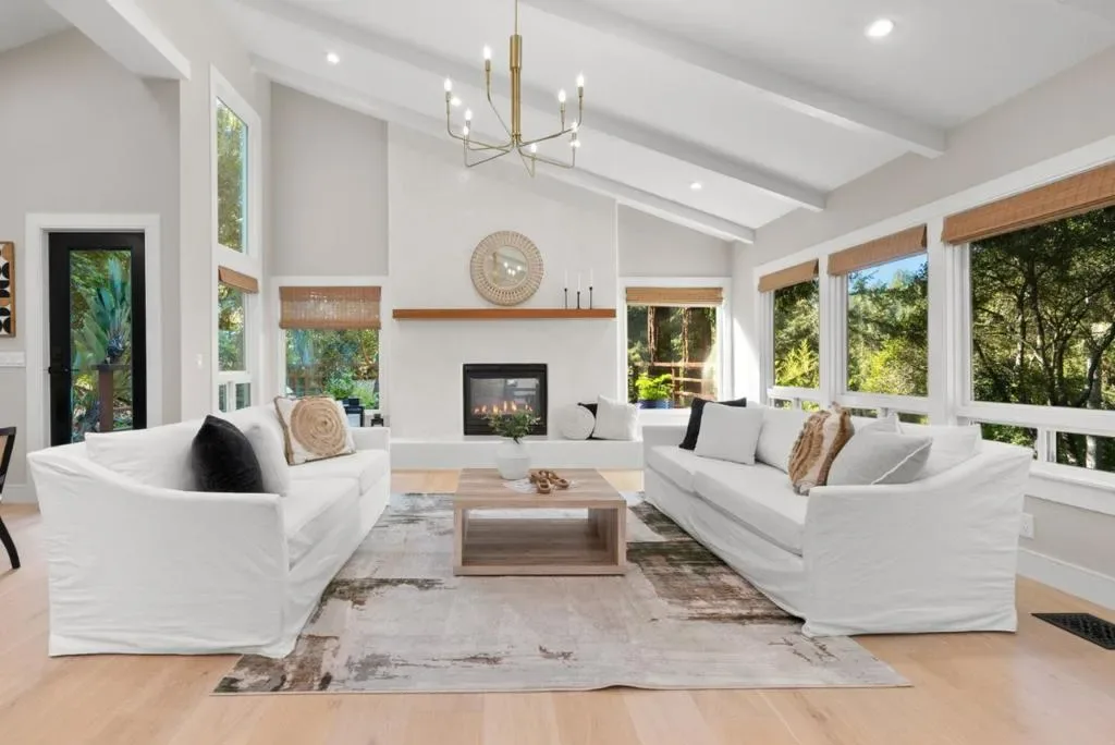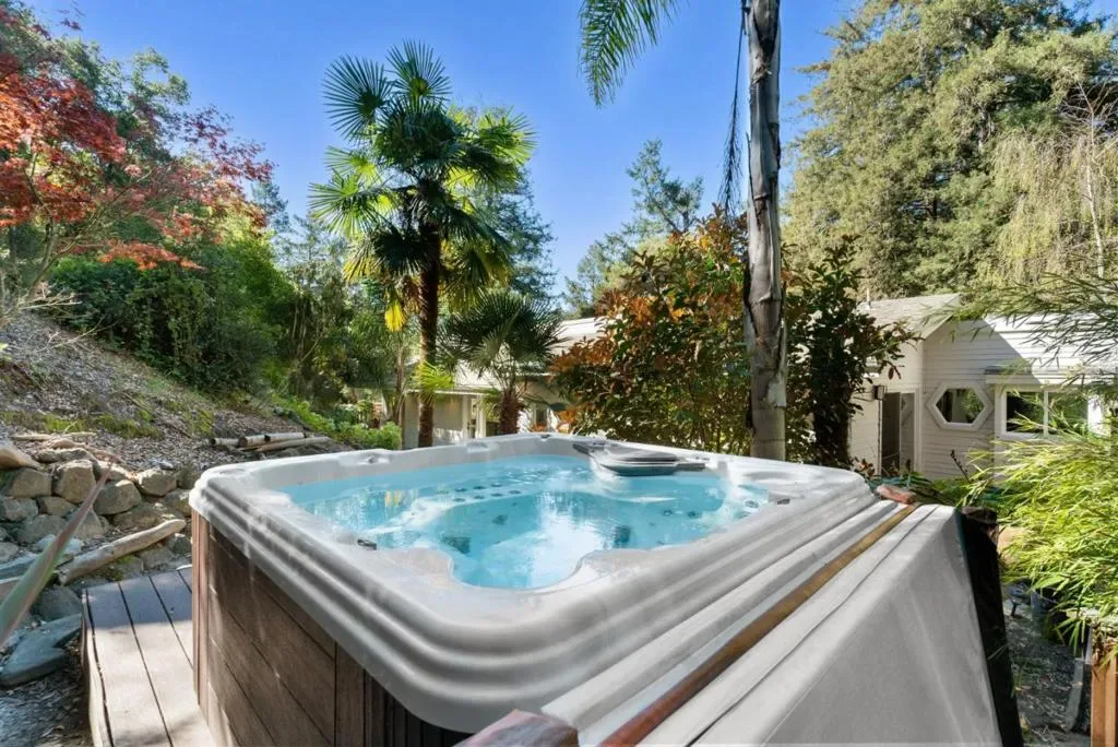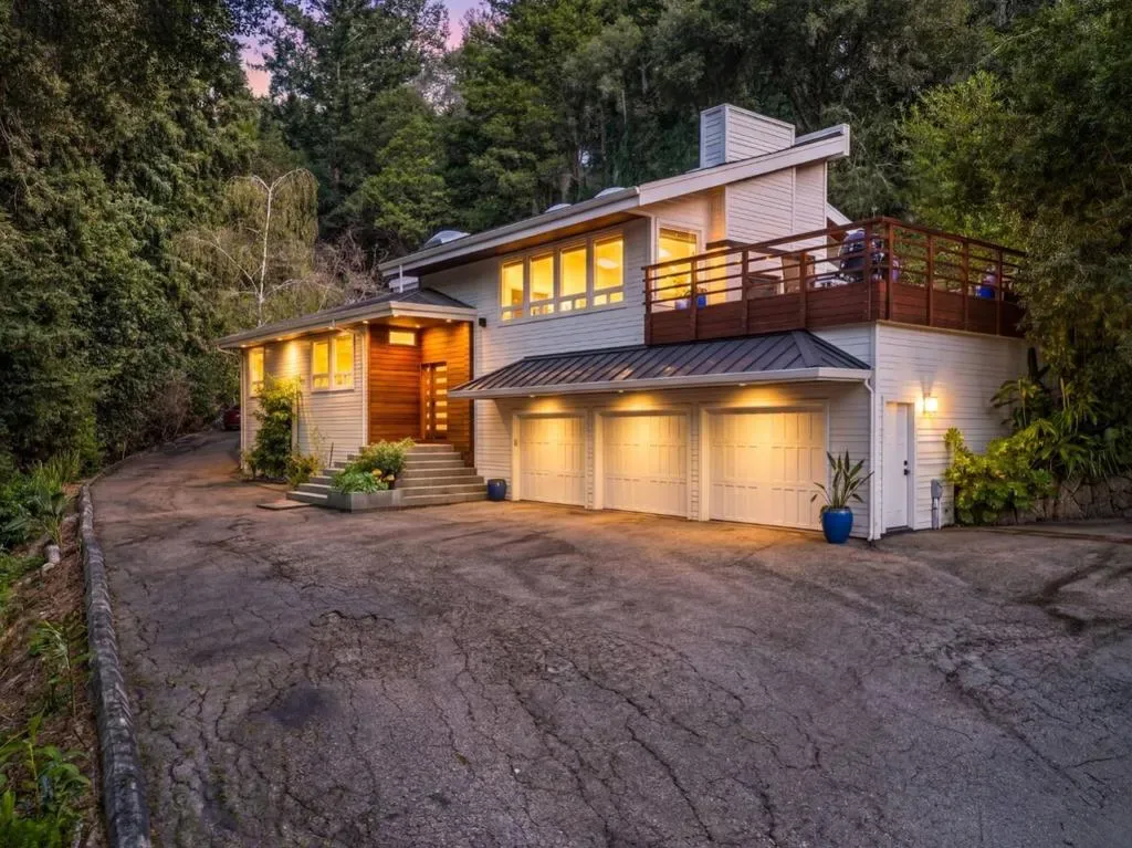 Escape to your own private sanctuary in the redwoods set on more than 3.5 acres of peaceful, private grounds. The beautifully crafted 3-bed, 2.5-bath main residence is complemented by a charming detached 2-bed, 1-bath guest cottage, offering over 3,000 sq.ft. of thoughtfully designed living space. Inside, artisan-crafted woodwork and a sophisticated blend of flooring elevate every room. The gourmet kitchen is a true centerpiece, featuring quartzite counters, custom cabinetry, high-end appliances, and a large center island. Light-filled living and dining areas sit beneath skylights and flow seamlessly to decks overlooking the redwoods. The luxurious primary suite offers a spacious walk-in closet, soaking tub, and direct access to a hot tub for a spa-like retreat. Outdoors, a soothing rock waterfall and koi pond create a resort-inspired setting perfect for relaxing or entertaining. The remodeled guest cottage provides exceptional flexibility for visitors or extended family, while a three-car garage adds convenience and ample storage. Perfectly positioned between Santa Cruz and Scotts Valley, the property offers quick access to the amenities of both communities while feeling a world awaymaking it an ideal retreat for commuters seeking serene privacy upon returning home.