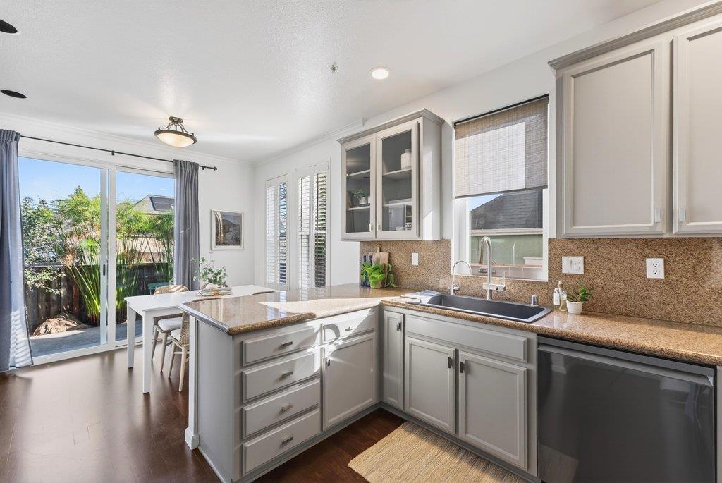 Nestled in, yet conveniently located, this meticulously cared for home sits in a coveted upper westside neighborhood, better known as Nobel. Designed by notable architectural firm Thatcher & Thompson, this is the model home for the Westmont development. Upon entering youre greeted by vaulted ceilings, hardwood floors and an inviting, cozy gas fireplace. The home has been meticulously cared for with pride of ownership evident around every corner. The garage space has been converted with an elegant double-door entrance, unique to the development, providing flex opportunities for a lounge room, home office, or simply for additional storage. Close to the UCSC main entrance, University Terrace Park, and Moore Creek Preserve, the location provides access to some of the best that Santa Cruz has to offer. The lushly landscaped back patio enhances the sense of privacy and creates a sheltered garden feel, ideal for outdoor relaxation or quiet work. Private parking and an efficient layout support both work-from-home and comfortable small-household living. Residents of the development also enjoy access to a private pool, BBQ area, private alley, and riparian open spaceamenities that add to the communitys charm and year-round usability.