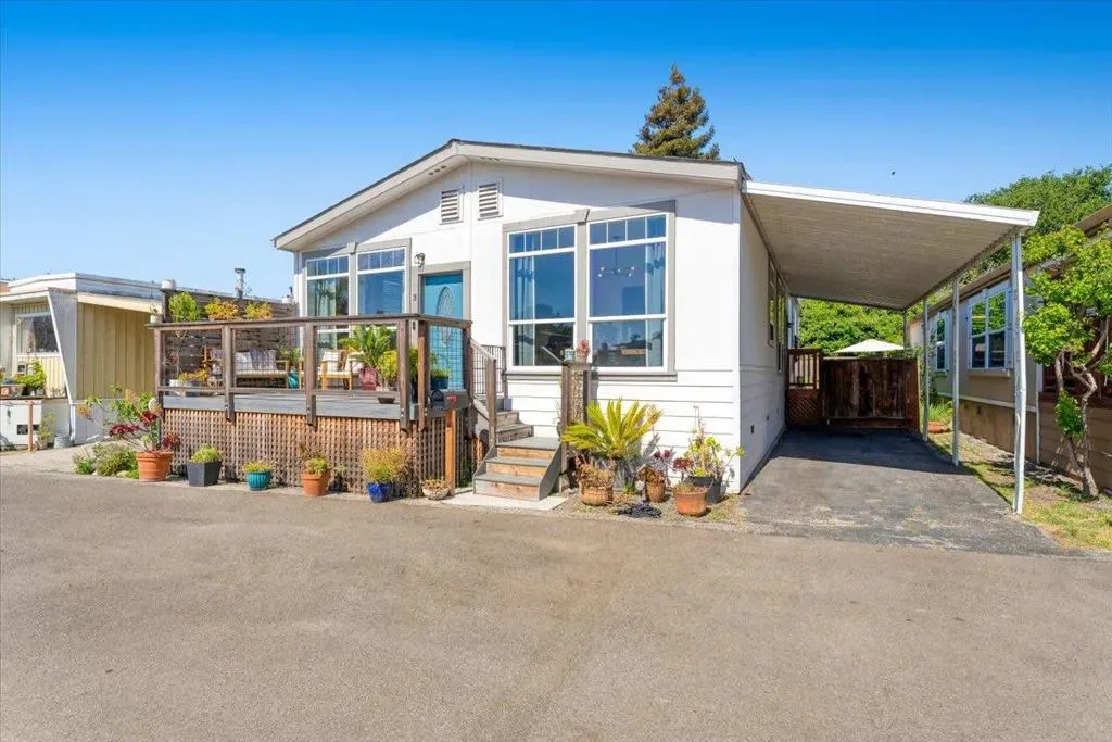 Live the Santa Cruz coastal lifestyle just moments from Twin Lakes State Beach and the iconic Crows Nest Restaurant. This beautifully updated 3 bed, 2 bath + office home offers over 1,500 sqft of light-filled living in one of the areas most desirable locations, just steps to North Harbor path access and a straight shot down 7th Ave to the beach. The North Harbor entrance connects directly to Santa Cruzs scenic bike and walking trails, offering easy, car-free access to some of the areas best beaches, parks, shopping, and restaurants throughout Midtown and the Westside. Inside, youll find soaring ceilings and stunning floor-to-ceiling windows that flood the home with natural light. The spacious layout features a large dining area, bamboo flooring in the main living spaces, and new carpet in the bedrooms. The kitchen offers abundant cabinetry and storage. Recent upgrades include a new roof, Trex deck portch, and custom redwood back stairs. The outdoor space as a updated patio, sunny yard, and a convenient outdoor shower, perfect for rinsing off after beach days. A rare all-age, rent-controlled, and well-managed park in Yacht Harbor Manor. Residents enjoy a community pool, BBQ area, ample guest parking, and solar-powered common areas. All of this in a prime coastal location!