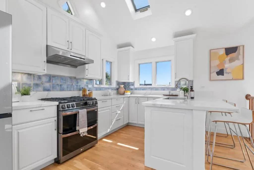 Situated in one of Santa Cruz most sought after neighborhoods, this move in ready home offers ocean views and effortless coastal living. Wake up to the sound of waves, with iconic surf breaks, beaches and scenic coastal paths just minutes away- an unmatched Pleasure Point lifestyle. Custom built in 2004, the home features a reverse floor plan designed to capture ocean views down Rockview. The upstairs living area is bright and airy with vaulted ceilings, expansive windows & abundant natural light. The modern kitchen features quartz countertops, new appliances & an ocean view. Unique finishes including a blue tile entry, spiral staircase and free standing gas fireplace add charm, while radiant heated flooring throughout is a rare luxury. Downstairs, the spacious primary suite opens to a private patio and a cozy second room works well as an office or for a daybed. The deck overlooking the backyard offers a peaceful place to unwind or watch your pet play in the fenced yard. The low maintenance outdoor space includes an outdoor shower, finished shed and a second parking space accessed via the rear alley. With the possibility of securing a vacation rental permit, this home is ideal as a second home or effortless coastal retreat just moments from the ocean – simply move in and enjoy.