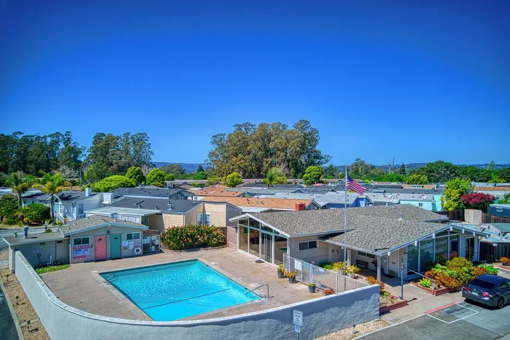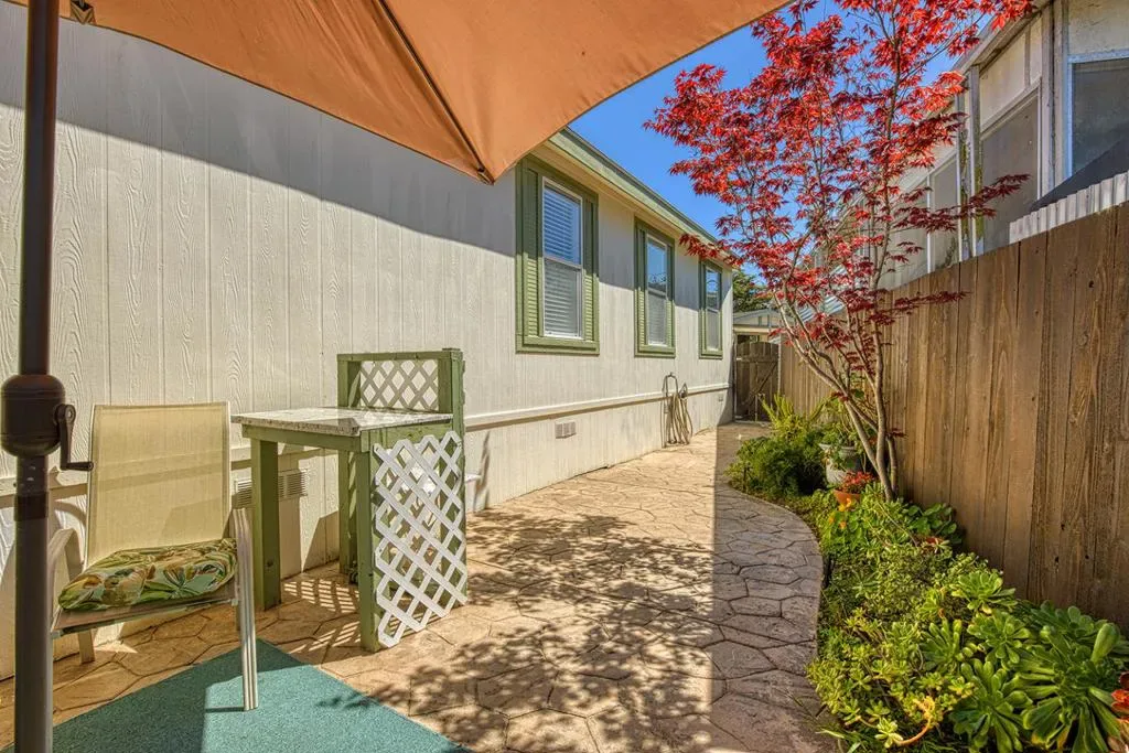 Super sweet and cozy. This could be your beach cottage. She is small but mighty nice. Very good location in the park. The kitchen is bright with a good size pantry. The living and dining areas are spacious for a smaller home. You have a private yard and a large storage shed. Close to the park entrance and guest parking. Shoreline Estates is a 55+ park. There is a swimming pool and clubhouse, just around the corner from your home. There is no property tax and the park is under County rent control. Only a few blocks to Sunny Cove for those lazy beach days. Also close to the Sunday farmers market. Life is short~ buy the beach house!