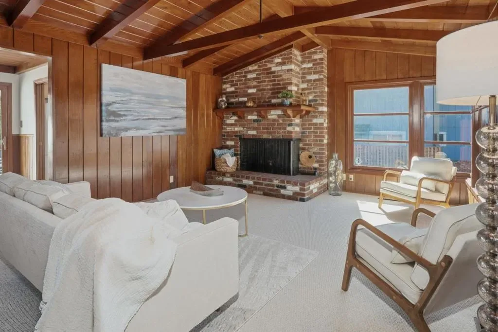 Amazing location w/ a 7 minute stroll to the beach and no rear neighbors. Beautiful custom home w/ fantastic woodwork! You will absolutely LOVE the Living Room w/ its beautiful brick fireplace & hearth, extra large windows w/ ocean peaks, & vaulted wood beam ceilings giving this beach home the feel of a Tahoe cabin! It is sure to be the favorite gathering place for friends & family. The kitchen & dining areas are light & bright w/ direct access to the expansive yard, making Al Fresco dining a breeze. The Primary Bedroom Suite is very spacious w/ a large walk-in closet & full En Suite. Additionally there is a well-sized guest bedroom & full guest bath. The 2-car garage has a built-in office area, that can easily be converted back if desired. The backyard has beautiful paver hardscaping, perfect for summertime entertaining, which extends to the front creating a great driveway for vehicles/RV/boats. There is also an AWESOME workshop w/ a woodburning stove, full bathroom AND upper game room! Want to practice your golf skills? Well you are in luck because there is also an adorable putting green AND plenty of space for a garden, too! With no backyard neighbors & easy to maintain landscaping, this home is a MUST SEE w/ so much charm & character and so close to everything!