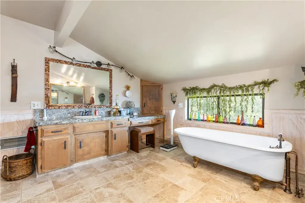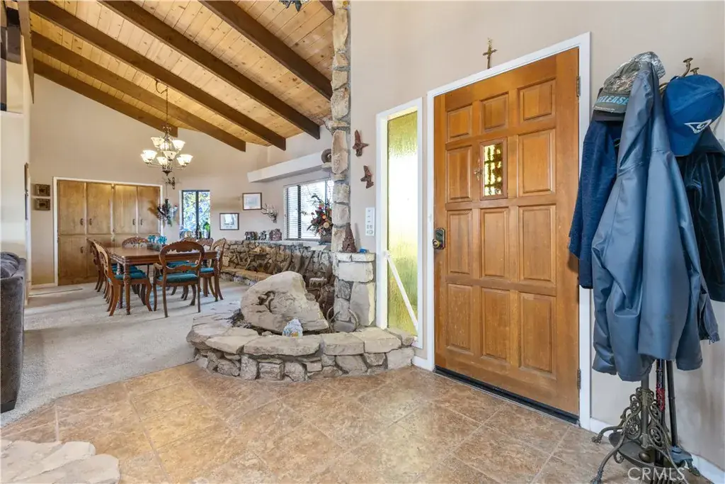Tranquil Mountain top retreat with million-dollar views of Santa Margarita Lake! Custom built home with exceptional features of an impressive rock centerpiece that greets you as you enter which is equipped with a waterfall and koi pond. The rock continues into a daunting chimney for both the living room and the family room fireplaces, one with a wood burning stove inserts for functionality and beauty. The massive beamed ceilings are finished with tongue and groove wood providing ample space for art or collections. The open floor plan includes a dining area suitable for sizeable gatherings. The kitchen is a chef’s dream with a huge butcher block island, built in refrigerator and freezer, double ovens, lots of storage and counter-space plus a massive walk-in pantry/butlers pantry. The tinned center ceiling provides a modern expression. The attached breakfast nook has a spectacular view of the lake.