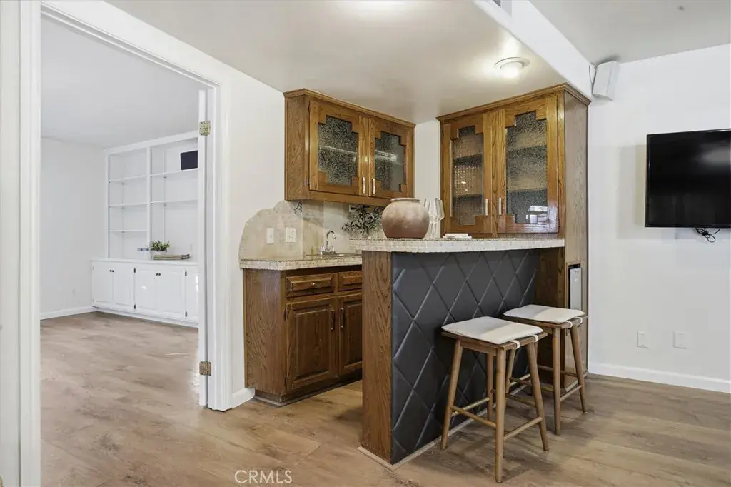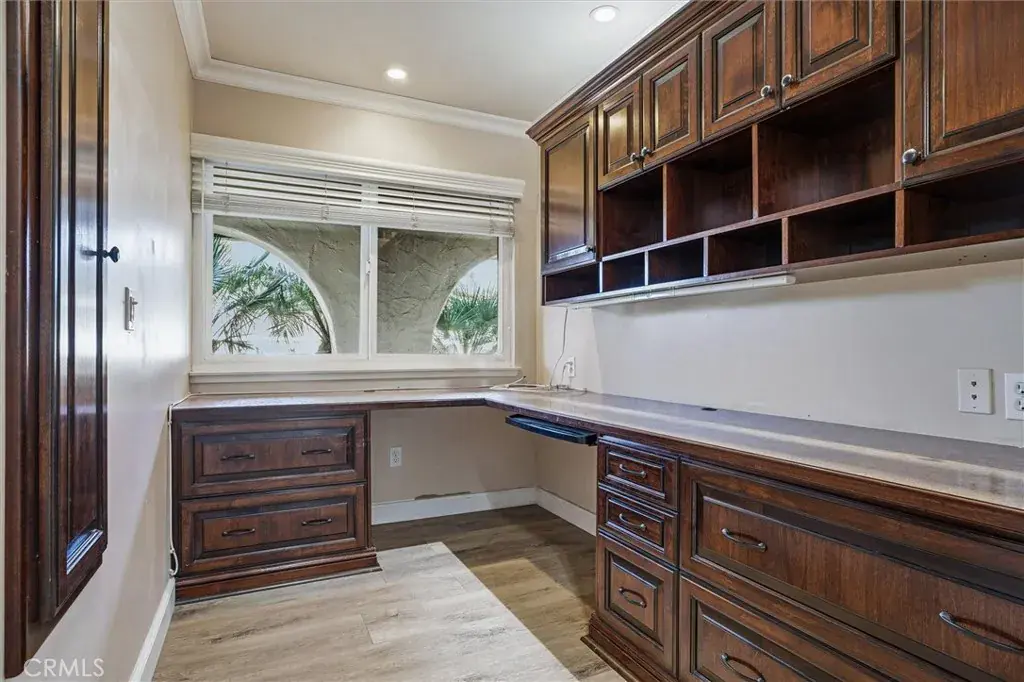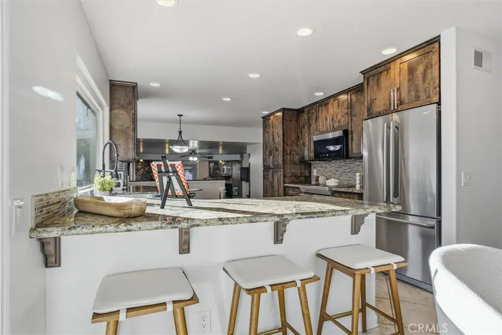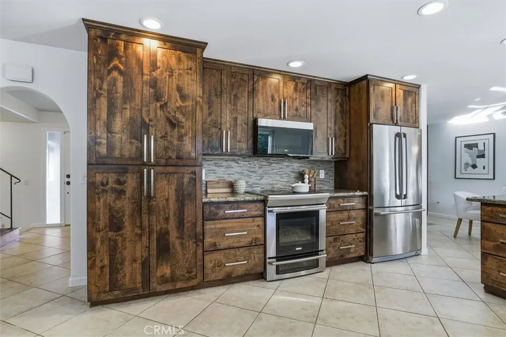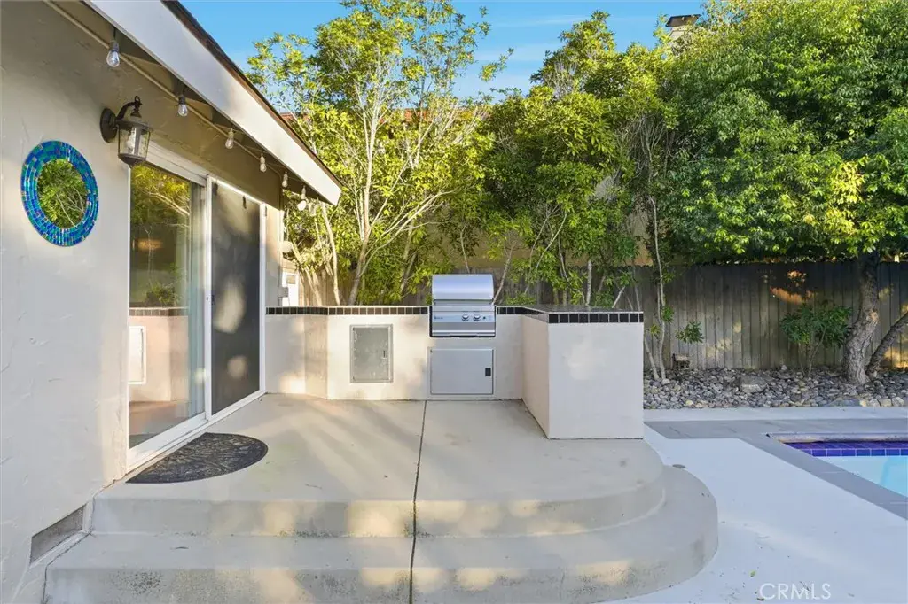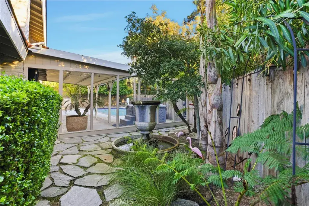 Spacious 4-bedroom, 3-bath home with an office AND flex room are a few of the highlights in this 2,713 sq ft home. Recently updated with brand-new luxury vinyl flooring and fresh interior paint throughout. Enjoy energy savings with paid-off solar. The remodeled, gourmet kitchen overlooks an entertainer’s backyard featuring an inground pool, hot tub, outdoor kitchen, small putting green and beautiful fountain features. Cozy fireplaces highlight both the formal living room and den. Enjoy serving cocktails or coffee from the wet bar also. This home is complemented by a formal dining room off of the kitchen for gatherings. Gated RV storage provides added convenience and flexibility.