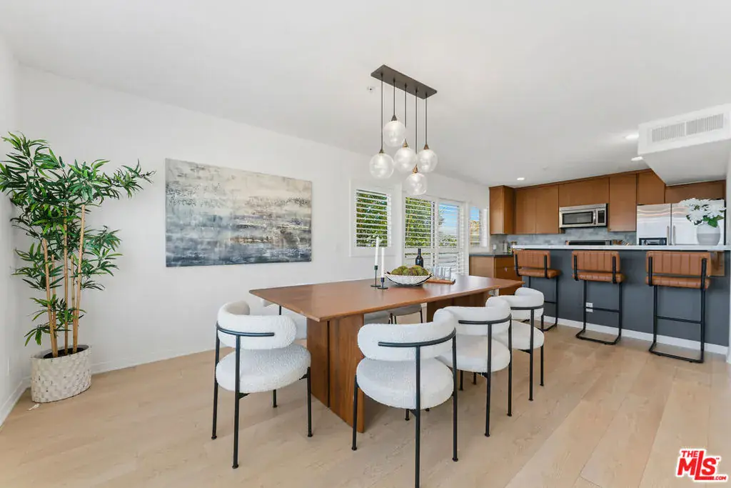 This is the one you’ve been waiting for. Top-floor, corner 3BR + loft / 2.5BA penthouse offering 2,264 sq. ft. in prime Santa Monicaa true single-family home alternative. Bright and expansive, this three-level residence is filled with natural light from floor-to-ceiling windows and features wide-plank flooring throughout. The main level includes a spacious living room with a wood-burning fireplace, dining area, powder room, private balcony, and an open-concept kitchen with contemporary wood cabinetry, quartz countertops, and KitchenAid and Bosch appliances.Downstairs, you’ll find the primary suite, two additional bedrooms, a hall bath with double sinks, and in-unit laundry with a 5.2 cu. ft. LG washer and dryer. The upper-level loft sits above neighboring buildings and opens to multiple outdoor spaces with treetop and ocean viewsideal for a home office, playroom, or entertainer’s retreat. Additional highlights include a newer HVAC system, two side-by-side parking spaces in a gated, covered garage with EV charging, and elevator access. Situated in an intimate six-unit building surrounded by mature hedges, this home offers privacy and tranquility just moments from Douglas Park, Montana Avenue, Wilshire Boulevard, the Third Street Promenade, and the beach. Located within the award-winning Santa Monica school district. A rare opportunity not to be missed!