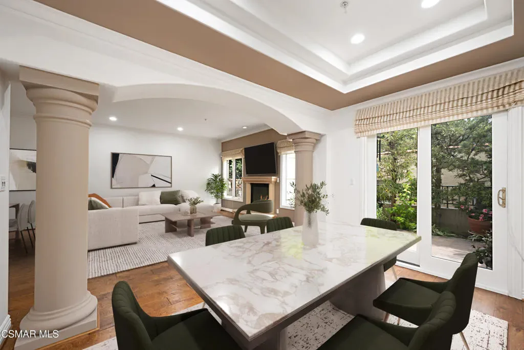 Set in the highly sought-after College Streets of Santa Monica, this executive 2 Bed + Loft / 2.5 Bath condo blends charming Mediterranean style with indoor-outdoor living and a prime location near vibrant shopping, dining, and activities. Enter through an enchanting courtyard framed by lush, colorful landscaping, setting the tone for this inviting space. Anchored by a romantic fireplace, the main level features an open layout where kitchen, living, and dining areas flow seamlessly–perfect for entertaining or everyday living. Newer appliances and a breakfast bar enhance the open-concept kitchen. A sliding glass door invites you to a tranquil patio ideal for al fresco dining, gardening, or simply embracing peaceful moments in the coastal atmosphere. Upstairs, the sunlit Primary Suite impresses with soaring two-story ceilings, a private balcony, expansive walk-in closet, and a bright bath with skylight, dual vanities, and soaking tub. A spacious secondary bedroom also enjoys a private Juliette balcony. The top-floor loft offers flexible space for work, creativity, or wellness and a sunny outdoor deck. On the lower level of the home you’ll find laundry, an expansive flex space, and direct access to an oversized 2-car garage with EV charger. Conveniences and local favorites like Erewhon, Bristol Farms, Milo & Olive, Fia, Sonny McLean’s, Douglas Park, the pickleball center, and so much more are just around the corner. From the spacious layout, prime location, and numerous neighborhood hangouts nearby, this is more than a place to call home–it is a lifestyle.