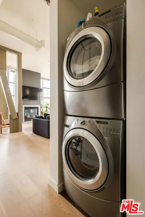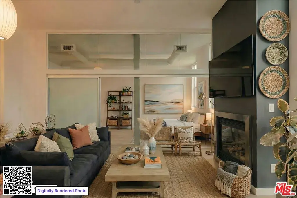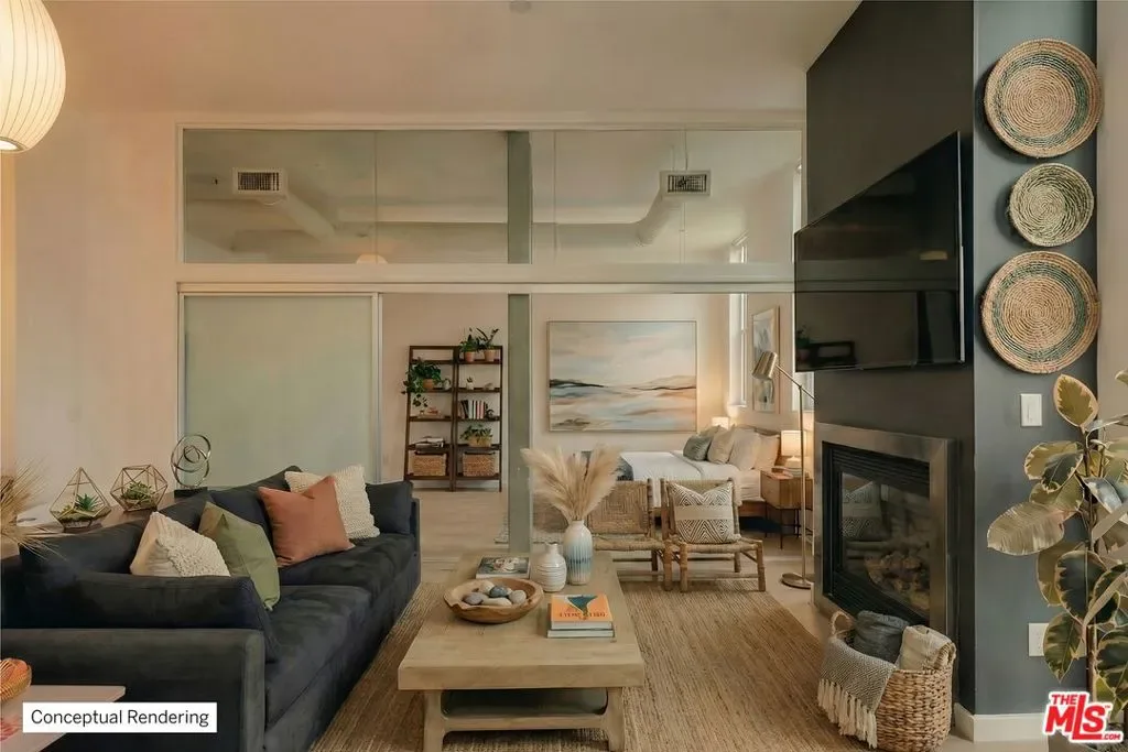 Welcome to this sun-drenched, industrial-chic corner unit in the coveted Broadway Lofts. This exceptional loft-style studio on the second floor blends urban sophistication with beachside ease, showcasing walls of glass that bathe the space in natural light from morning to sunset. Unit 205, a rare corner residence, is distinguished by its oversized wraparound deck with captivating city views — a striking extension of your living space that invites seamless indoor-outdoor living and effortless entertaining. Beyond the entry, an open-concept layout unfolds with soaring ceilings, wide-plank floors, and distinctive loft-inspired detailing. The sleek Italian kitchen, complete with Boffi cabinetry and Caesarstone countertops, flows elegantly into the expansive living and sleeping areas. The well-proportioned sleeping area includes a generous walk-in closet, while the modern bathroom features clean lines and premium finishes. Residents of Broadway Lofts enjoy the peace of mind of a secure-access building, with key fob entry required for all common areas, elevators, and parking. Additional highlights include in-unit laundry, central air, and secure side-by-side parking for two vehicles with ample storage space. Enjoy access to a rooftop viewing deck with panoramic city and mountain vistas, as well as the everyday convenience of Cafe Lovi just steps from your front door. Perfectly positioned just blocks from Memorial Park, Santa Monica Brew Works, Ralphs, Co-Op, Bergamot Station, and an array of shops and restaurants, this home epitomizes Santa Monica living — stylish, walkable, secure, and distinctly private.