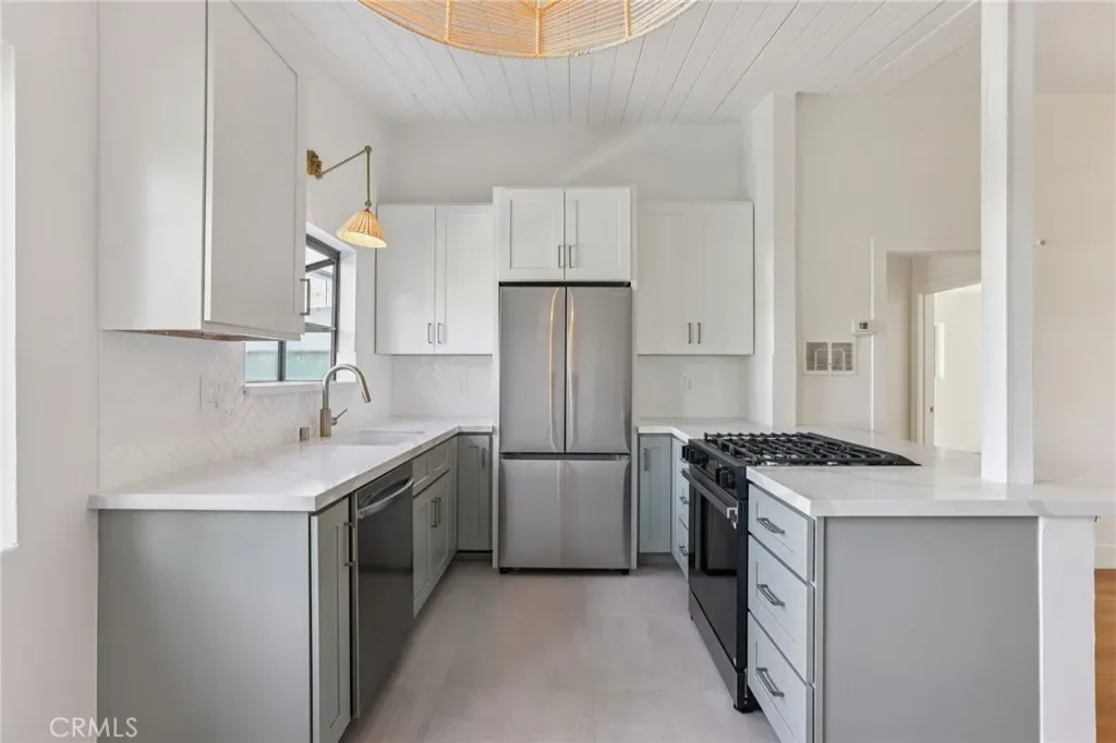 Bright and beautifully updated apartment in the desirable Ocean Park neighborhood of Santa Monica, featuring an open-concept layout with wide-plank flooring, fresh white interiors, and modern designer lighting. The renovated kitchen offers quartz countertops, custom cabinetry, stainless steel appliances, and a breakfast bar that opens to the living area, while the updated bathroom showcases stylish tilework, a modern vanity, and a tub/shower combination. Enjoy a prime location near Main Street, local cafés, dining, shopping, and just minutes from the beach—offering the best of coastal Santa Monica living.