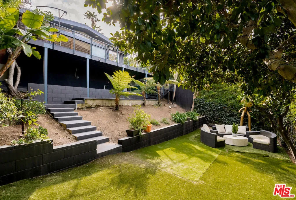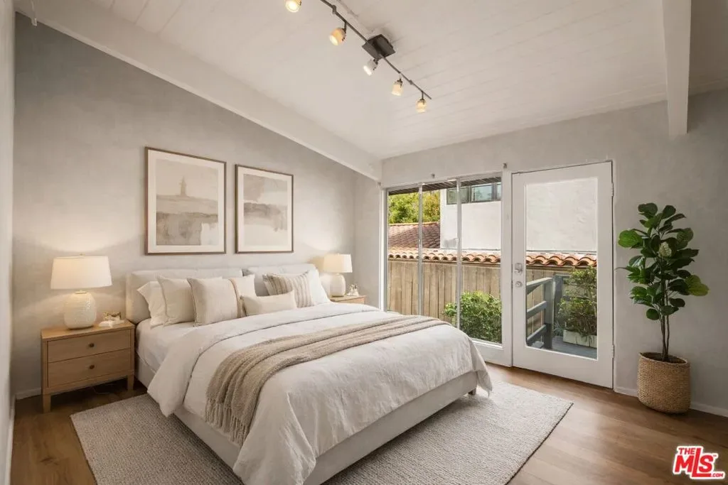 Located in the highly sought-after Santa Monica Canyon, this stunning totally redone architectural residence offers serene canyon views and multiple patios and outdoor areas to enjoy the fresh coastal breeze. Privately gated and secure, the home features 5 bedrooms, 3 bathrooms, and approximately over 2,270 square feet of thoughtfully designed living space. The main living room showcases vaulted ceilings, a cozy fireplace, and large windows framing treetop and canyon views, flowing seamlessly into the newly updated kitchen with Calacatta Gold waterfall countertops, a built-in cabinet-front refrigerator, WOLF stainless steel appliances, and countertop seating. Down the hall are two bedrooms, one with an ensuite bathroom, alongside a second full bath and a spacious office with outdoor access. On the ground level, a generous guest bedroom includes built-in storage and a large window that fills the room with natural light. The top floor is dedicated to the primary suite, complete with sweeping canyon views, private terrace, a cozy fireplace, walk-in closet, and a spa-like bathroom featuring dual vanities, a rainfall shower, and a soaking tub. Sliding glass doors from the main living room open to a large patio, with additional outdoor spaces and a flat grassy area below, ideal for private gatherings and year-round entertaining. The gated driveway accommodates 2 cars, includes an EV charger. Stacked laundry is found on the main level added for convenience. Perfectly positioned just moments from PCH and the shops, restaurants, and boutiques of Montana Ave and Ocean Ave, this turnkey residence delivers privacy, charm, and prime Santa Monica living in one of the Westside’s most desirable neighborhoods.