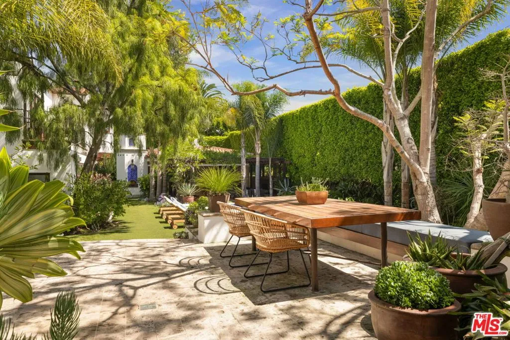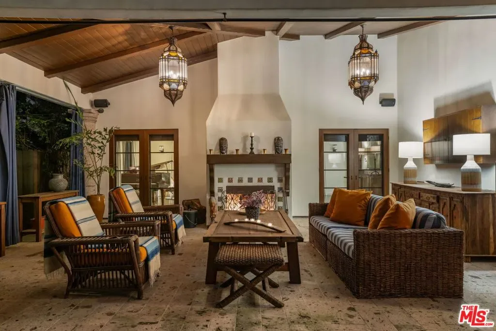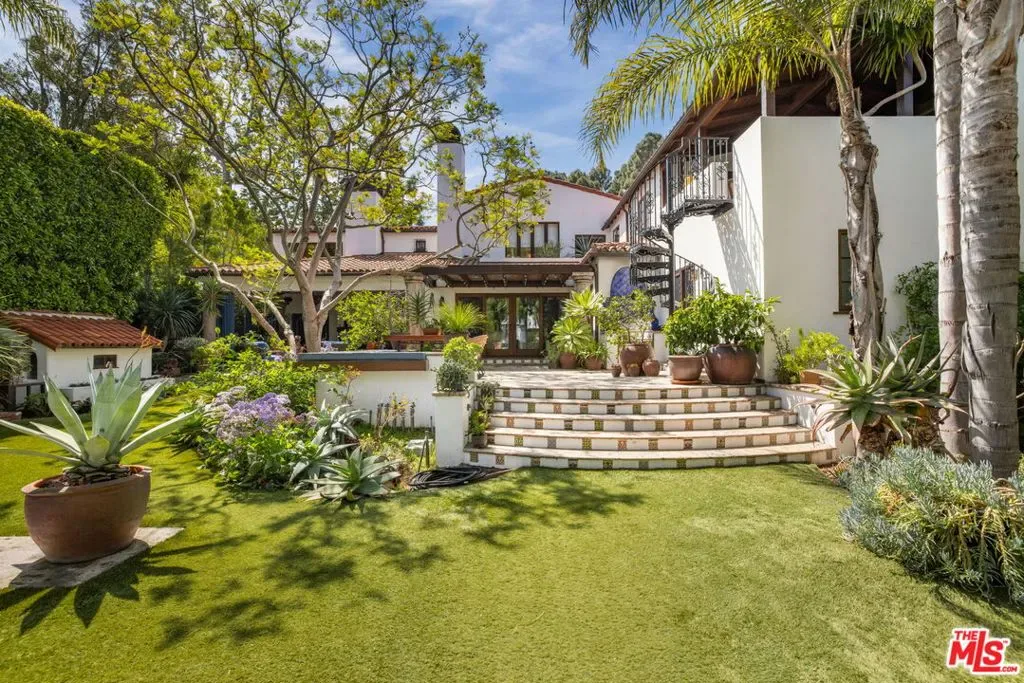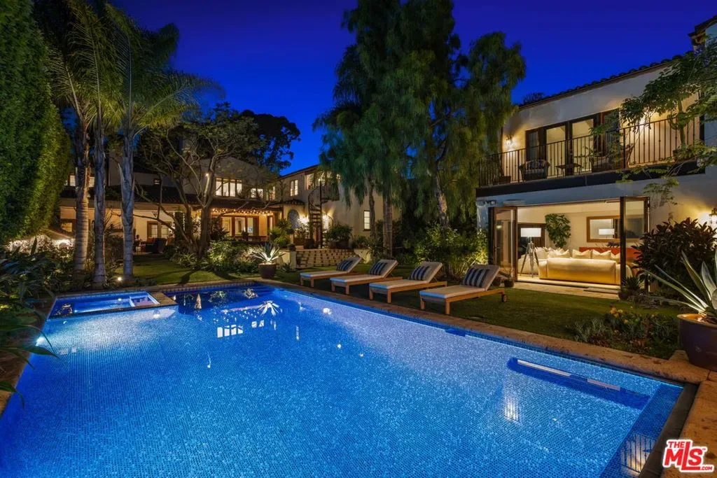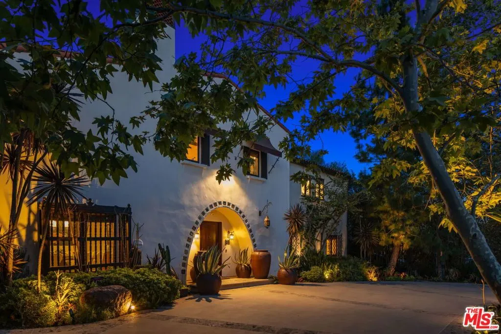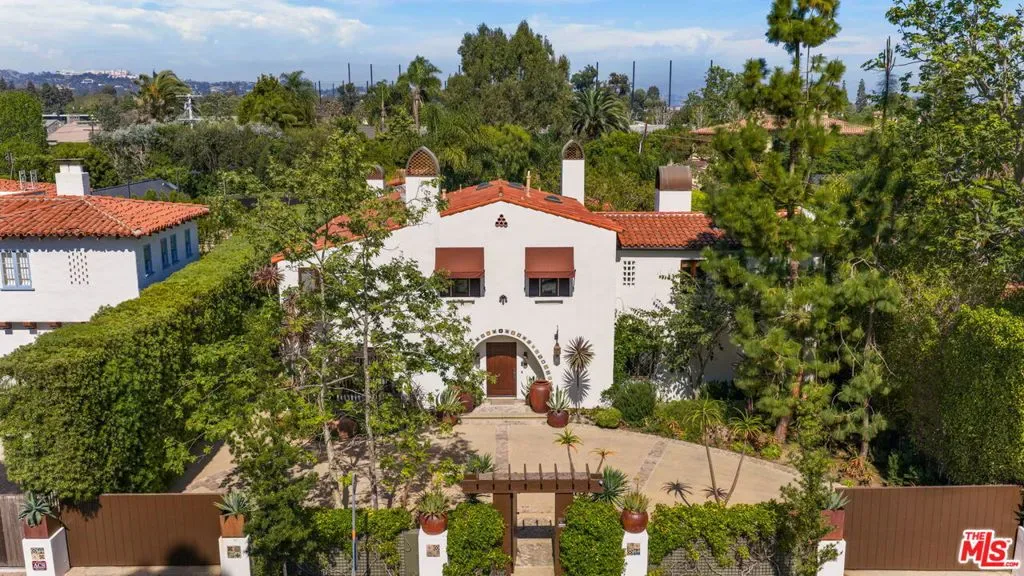 Nestled behind private gates on an Expansive 16,000+ sq ft lot, this exceptional Spanish Mediterranean residence masterfully blends timeless architecture with modern comforts in Santa Monica/Brentwood location. An arched entryway adorned with decorative tile work, leads to a stunning step-down living room with dramatic beamed ceilings, a fireplace, & French doors leading to a covered patio – perfect for gatherings that flow effortlessly outdoors. The formal dining room, with butler’s pantry, adjoins a beautifully appointed kitchen & breakfast room that overlooks a warm family room with fireplace & library nook & has direct access to the lush backyard. A private ensuite bedroom, along with an elegant powder room, completes the main level. Upstairs, three additional ensuite bedrooms offer comfort & privacy. The magnificent primary suite is a true retreat featuring its own covered terrace with serene garden views, fireplace & graceful circular staircase leading directly to the pool & yard below. The suite also includes a generous walk-in closet, a spa-like bath with dual vanities, soaking tub, separate steam shower & skylights. The backyard is nothing short of spectacular resort-style living at its finest. Centered around a sparkling pool & spa, the grounds offer multiple lounge areas, half-court basketball court & beautifully designed outdoor spaces for relaxation & entertainment. Adding incredible versatility is a refined detached guest retreat complete with living area, office, bedroom suite, & exterior pool shower perfect for family & guests. Further enhancing the property, it features a sophisticated pavilion with a decorative tower housing a fully appointed open-air commercial-grade kitchen, complete with top-tier appliances, pizza oven, & bar seating. This full outdoor entertaining pavilion contains a large dining area for al fresco entertainment & seating area with fireplace. This meticulously landscaped sanctuary with world-class amenities creates a true private paradise. The ideal blend of elegance and convenience by being moments away from the Brentwood Country Mart, charming Montana Avenue shops, Palisades Park, iconic Santa Monica Stairs, 3rd Street Promenade, and the beach that defines this sought-after coastal enclave.