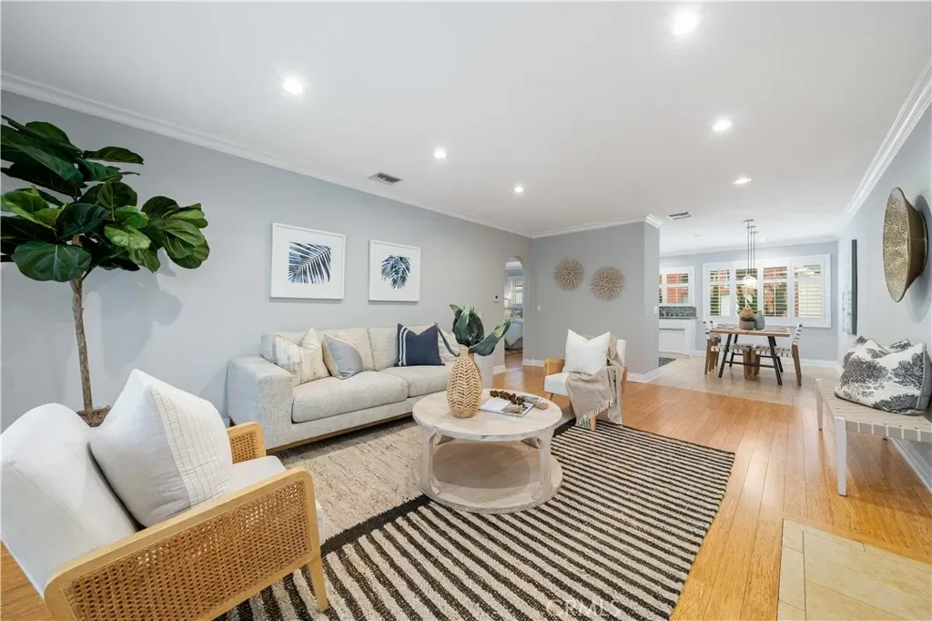 This light-filled home features elegant bamboo hardwood flooring throughout, freshly painted interiors, plantation shutters and a thoughtfully designed floor plan with a seamless flow between the spacious living and dining areas—perfect for both everyday living and entertaining.