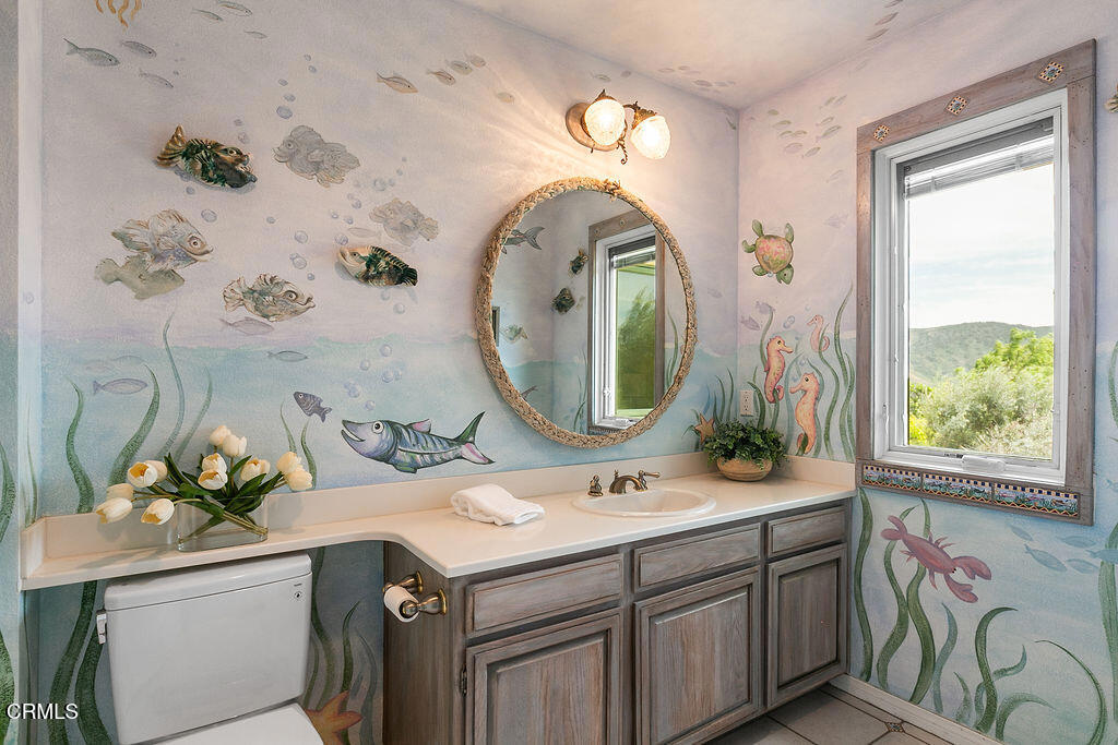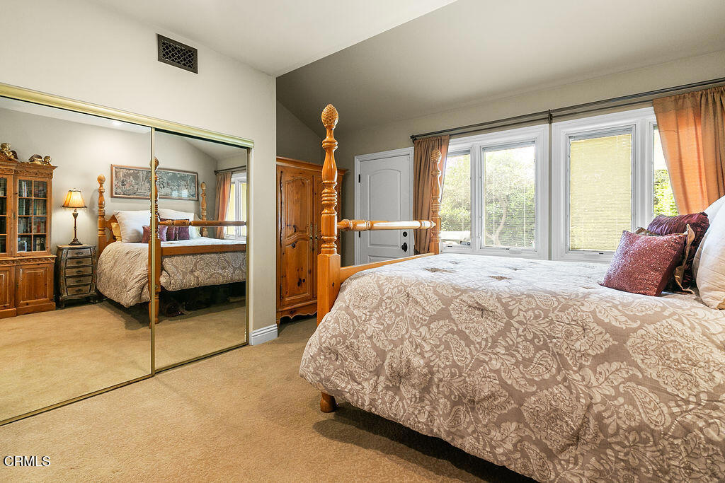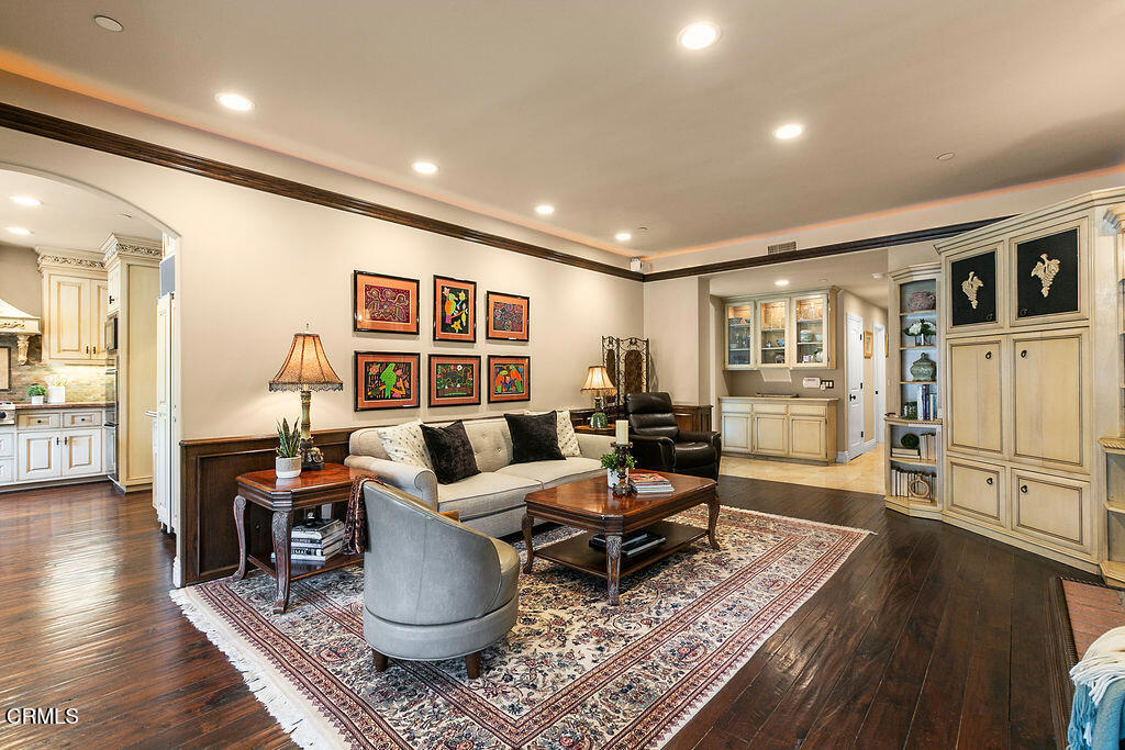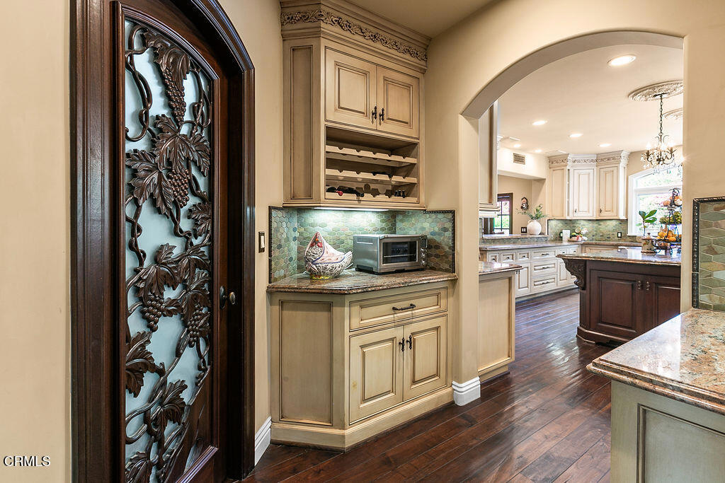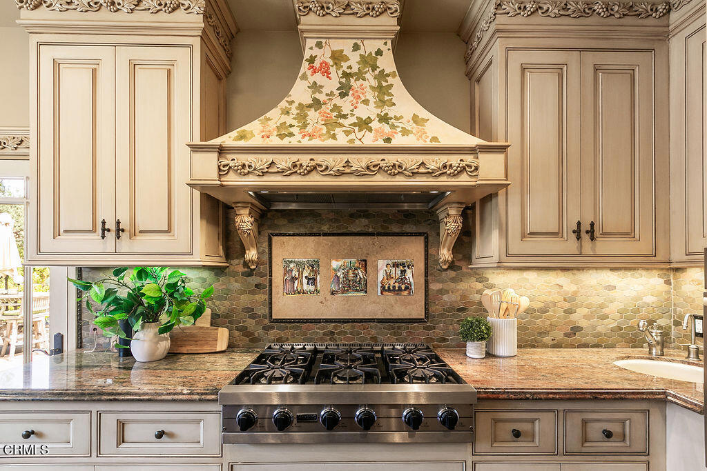 Rancho Las Brisas Estate Private Vineyard, Orchard & Resort Living in Santa Rosa Valley.Tucked behind gates of an intimate 25-home enclave of long-standing residents, this extraordinary estate offers a rare sense of community, privacy,& tranquility.Set on a secluded flag lot, a cobblestone driveway lined with fruitless olive trees leads to a residence designed for seamless indoor-outdoor living.This French Mediterranean-inspired estate features 5 bedrooms and 4 bathrooms, offering timeless elegance paired with exceptional craftsmanship. Inside, rich walnut wood flooring, travertine with inlaid mosaic details, crown moldings, wainscoting, and custom millwork create a warm yet sophisticated environment. 3 fireplaces, solid wood doors, Pella windows & French doors w/built-in blinds. Designed for both everyday comfort & entertaining, the home includes expansive living and dining areas, a welcoming family room, and a game room with wet bar and refrigerator. Hidden rope lighting, architectural ceiling details, and custom finishes enhance the ambiance throughout. The gourmet kitchen is a true centerpiece, featuring double Miele ovens, Sub-Zero refrigerator/freezer, 2 dishwashers, trash compactor, granite countertops, & oversized island w/ abundant storage & prep space. Butler’s pantry w/beverage refrigerator, pullout storage, wine racks, along with dedicated wine room w/custom wine box wall, make this home ideal for entertaining. The primary suite is a luxurious retreat, complete w/ double-sided fireplace shared with a sitting room, domed ceilings, French doors opening to a private balcony. The spa-like bath includes a Jacuzzi tub, stone countertops, and refined lighting details.Resort-style setting. The grounds feature a sparkling pool, spa, and tranquil koi pond, surrounded by mature, drought-tolerant landscaping. Multiple outdoor living areas include covered patio and a stunning cabana with cast-concrete architectural elements, gas fireplace, and hookups for TV/audio.Fully equipped outdoor kitchen incl a stunning exposed wood beam ceiling, gas grill, wood-burning BBQs, & refrigerator.Adding to the property’s uniqueness is a flourishing orchard with avocados, citrus, macadamia nuts, cherimoya, &additional fruit trees, along with established vineyard producing its first vintage, featuring 70 Cabernet Sauvignon vines and 4 Merlot vines, offering rare opportunity to enjoy a true farm-to-table and vineyard lifestyle.