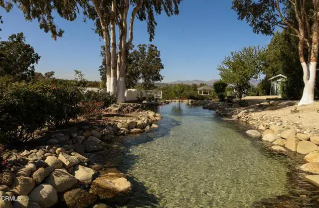 Resort-Style Ranch! This meticulously maintained 7.23-acre estate offers luxury, sustainability, and resort-style living with equestrian and canine amenities. Ideal for those who value open space and a self-sufficient lifestyle, the property features abundant well water, two solar systems, three water meters, and a commercial-grade drip irrigation system. A high-yielding well supplies the entire property, including a private lake, while solar systems power the main residence and well. A separate commercial property with its own entrance includes 3-bedrooms, 2-baths with multiple office spaces and an oversized yard, creating income potential and added flexibility. Towering palms, lush table grapes, and sweeping views of the Santa Ynez and San Rafael Mountains set a stunning scene. Two one-one-bedroom apartments above dual garages provide guest or staff accommodations. Expansive decks and patios offer seamless indoor-outdoor living, with the upstairs primary suite featuring a private deck and breathtaking views.Located off Highway 154 with ample trailer space, this estate is a rare blend of comfort, luxury, and off-grid living. Live the dream in your own private paradise.