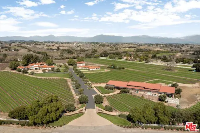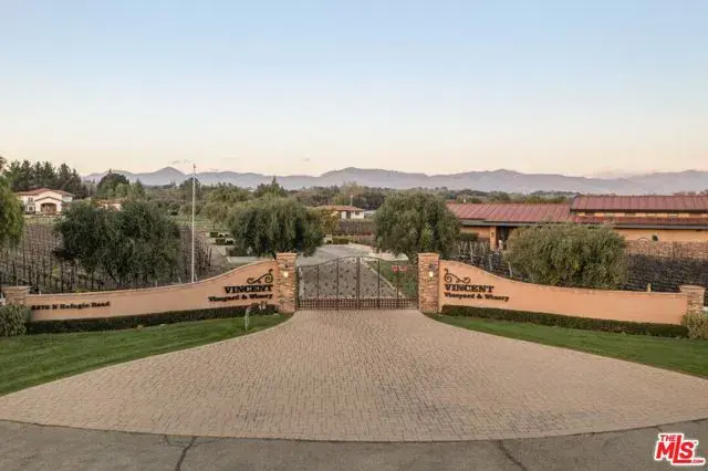 Nestled on just under 25 acres of premier wine country, this exceptional Santa Ynez vineyard compound offers a blend of luxury, privacy, and viticultural prestige– all nestled behind gates, and ripe with opportunity for a vintner to continue its legacy. Ideally located just a short distance from the charming town of Los Olivos, and Mattei’s Tavern, The Vincent Vineyards Estate is well positioned for high visibility on the scenic SR-154. The heart of the property is a meticulously built 6-bedroom Italianate villa, thoughtfully designed with timeless elegance and panoramic views of the surrounding vineyards and expansive backyard and grounds. This main residence features luxurious en-suite bedrooms, a breakfast room, an elevator, an exercise room, and a primary suite with dual closets and spa-like bathrooms. Complementing the main home are two well-appointed guesthouses featuring 3 additional bedroom suites, spacious living areas, and gourmet kitchens, ideal for extended family or visitors seeking privacy and comfort. A haven for wine enthusiasts and collectors alike, the estate boasts 14 acres of meticulously maintained and imported Bordeaux varietals, supported by a fully equipped onsite winery and tasting room – perfect for private label production or continuing its commercial operation. With dozens of 90+ pt wines and countless accolades, this is an incredibly rare opportunity for a wine enthusiast to truly own and experience the quintessential ‘Vintner Lifestyle’. Additional amenities include a stunning pool pavilion and cabana with chef’s kitchen and bar, ideal for relaxed entertaining, and 7 garage spaces for the true car enthusiast. Positioned in one of the most coveted corridors of the Santa Ynez Valley, this estate offers the perfect blend of luxury living and agricultural opportunity, just minutes from acclaimed restaurants, tasting rooms, and the vibrant lifestyle of Los Olivos and Santa Ynez.
