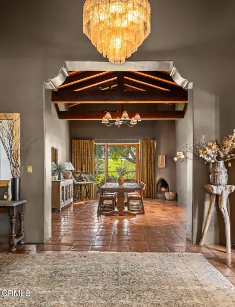 Set at the end of a long private drive, this exceptional Spanish-style estate spans approximately 22+/- acres across 2 legal parcels, offering rare privacy, architectural integrity, and breathtaking views of the Santa Ynez Valley. Inspired by the timeless work of Wallace Neff, the approx. 6,120 +/-SqFt main residence on its own 15.7+/- acre parcel. The home features 6 bedrooms and 5.5 baths, with vaulted ceilings, oak and Saltillo tile floors, custom-tiled baths, a wine storage room and 6 fireplaces. Sweeping 270-degree views extend across rolling vineyards and oak-studded mountains The home is designed around a beautiful central courtyard with resort-style pool and spa, expansive verandas, outdoor fireplace, and a Mugnaini pizza oven — creating a seamless indoor-outdoor lifestyle with approximately 9,000+/- sq ft under roof. A custom stone motor court and detached 3-car garage complete the main residence amenities. A private 2-bedroom, 1-bath guest casita offers its own living, dining, laundry, and pergola-covered patio. A fully independent second residence on its own 7.2+/- acre parcel (2750 Calzada Avenue) features 2000+/- square feet with 3 bedrooms, loft, office nook, and detached garage. A Hydro-Court clay tennis court rests at the lower section of the property. The property has exceptional south-facing vineyard views. This property is ideal for extended family, guests, or staff. Each property is served by their own private wells. This is a truly irreplaceable Santa Ynez Valley offering combining scale, privacy, and timeless California elegance.