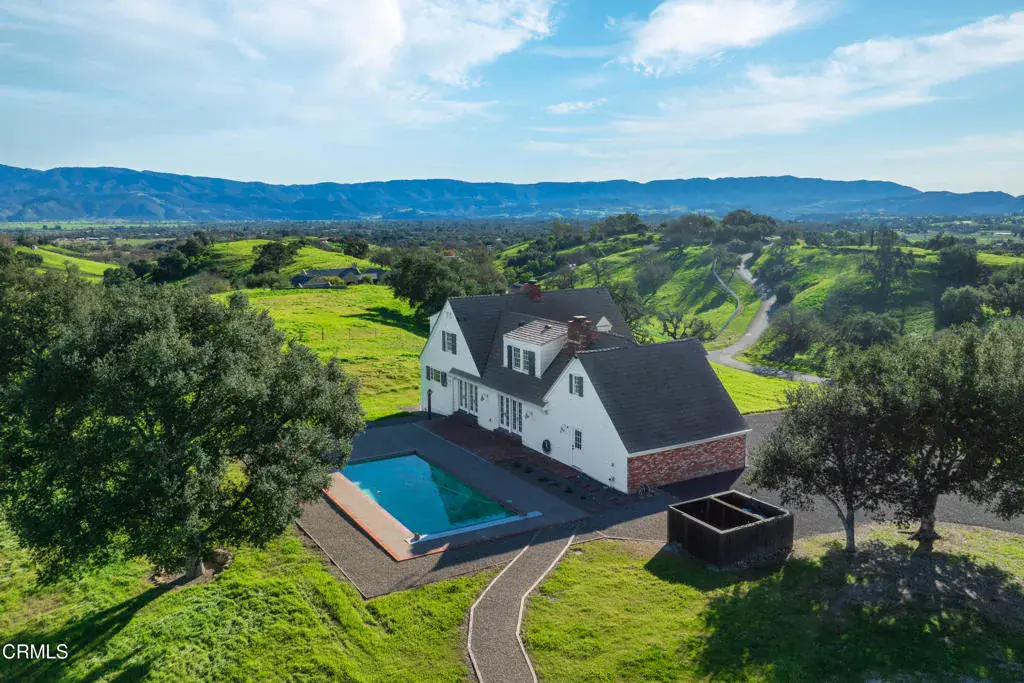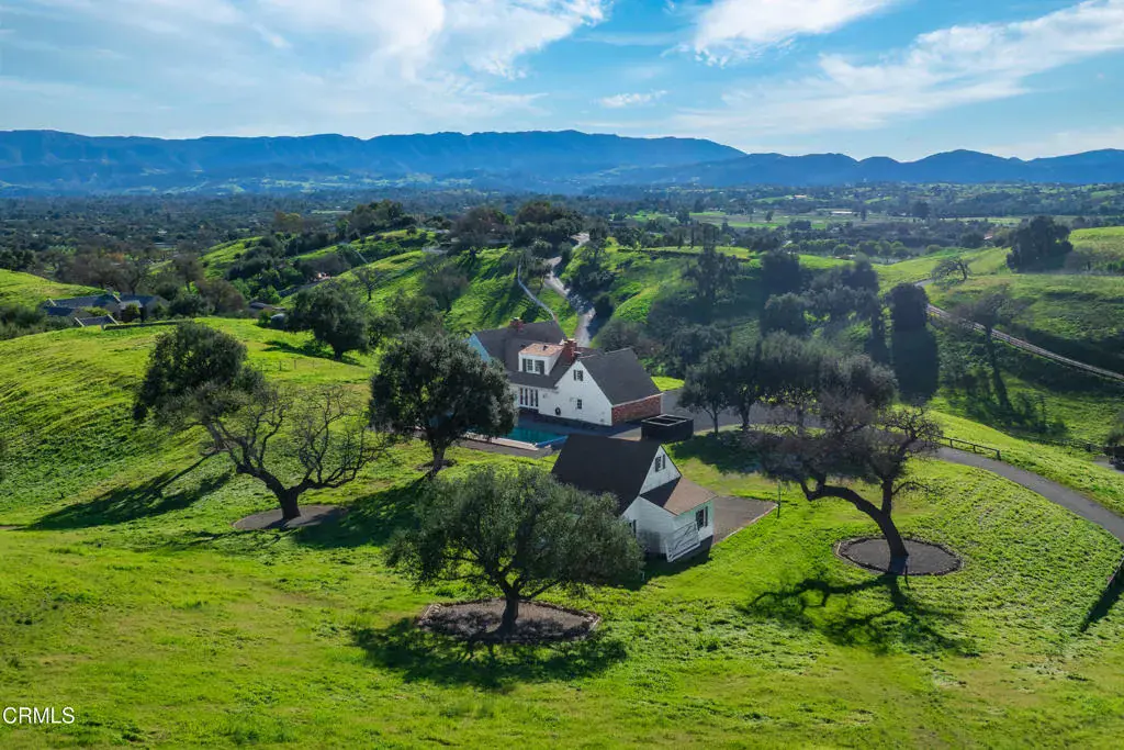 Set on 20.23+/- acres in the gated Rancho Ynecita community, this classic Farmhouse offers sweeping panoramic views of the Santa Ynez Valley along with timeless country character and thoughtful modern updates.The 3,740+/- sq ft residence features 3 bedrooms, 4 full baths, and a flexible layout designed for both comfort and creativity. A finished 1,000+/- sq ft basement expands the living potential, perfect for recreation, hobbies, or guest quarters. The primary suite includes a private office for work flexibility or furnish as a sitting room for your own personal sanctuary. Attached is an adjacent large finished room, ready to be the dream walk-in closet, gym or second home office. The formal living room is filled with abundant natural light and centers on a beautiful wood-burning fireplace, while the family room offers its own fireplace and several French doors that open directly to the pool, showcasing sweeping views of oak-studded hills and rolling countryside. Recent updates include new carpeting in the office and staircase, updated shower fixtures, a new water heater, indoor/outdoor carpeting in the basement, and grading and drainage improvements.Outdoors, the property is equally compelling. Enjoy an 8-foot deep pool for relaxing or entertaining, a chip-sealed driveway and motor court, and beautifully maintained oak trees, carefully trimmed and laced over the past five years. A separate barn with a finished interior provides versatile space for farm equipment, a workshop, or creative pursuits, with an adjacent storage room ideal for gardening tools.If you are looking to build a larger home consider the elevated hilltop vacant site that is ready for your dream home. Zoned AG-I-20, the property offers agricultural and equestrian possibilities, while its location places it within the desirable Los Olivos Elementary and Santa Ynez Valley Union High School Districts.Whether as a full-time residence or weekend retreat, this hilltop Farmhouse offers space, views, and opportunity, ready to become your private sanctuary in the heart of Santa Ynez Valley Wine Country.