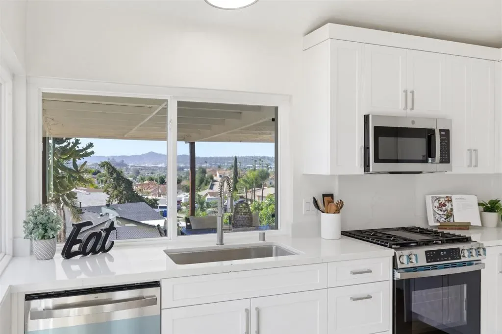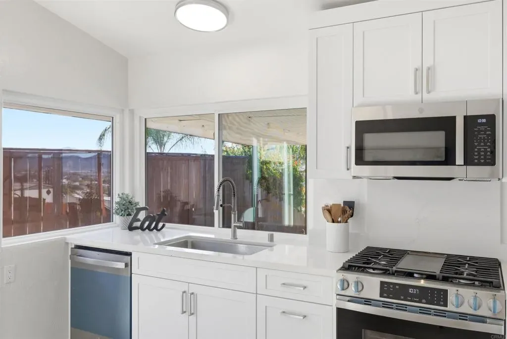 Welcome to this beautifully renovated 3-bedroom, 2-bath single story home in the heart of Santee, offering stunning panoramic views and modern upgrades throughout. This move-in ready property has been thoughtfully updated from top to bottom, creating the perfect blend of style, comfort, and functionality. Step inside to find luxury scratch-resistant laminate flooring, all new lighting, and fresh interior paint that create a bright and inviting atmosphere. The fully remodeled kitchen features quartz countertops, brand-new appliances, and modern finishes, making it both stylish and functional. Both bathrooms have been completely renovated with contemporary upgrades. Additional improvements include a new garage door system with motor, tracks, and opener, freshly painted garage floors, new fencing, and fresh front landscaping for great curb appeal. The home has also been freshly painted inside and out, giving it a clean, modern feel. Step outside to a spacious backyard with breathtaking panoramic views, perfect for relaxing, entertaining, or simply enjoying beautiful Southern California sunsets. This turnkey Santee gem is ready to welcome you home.