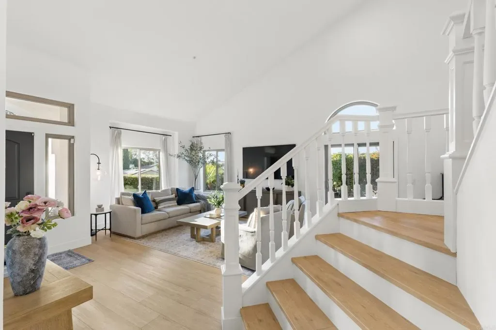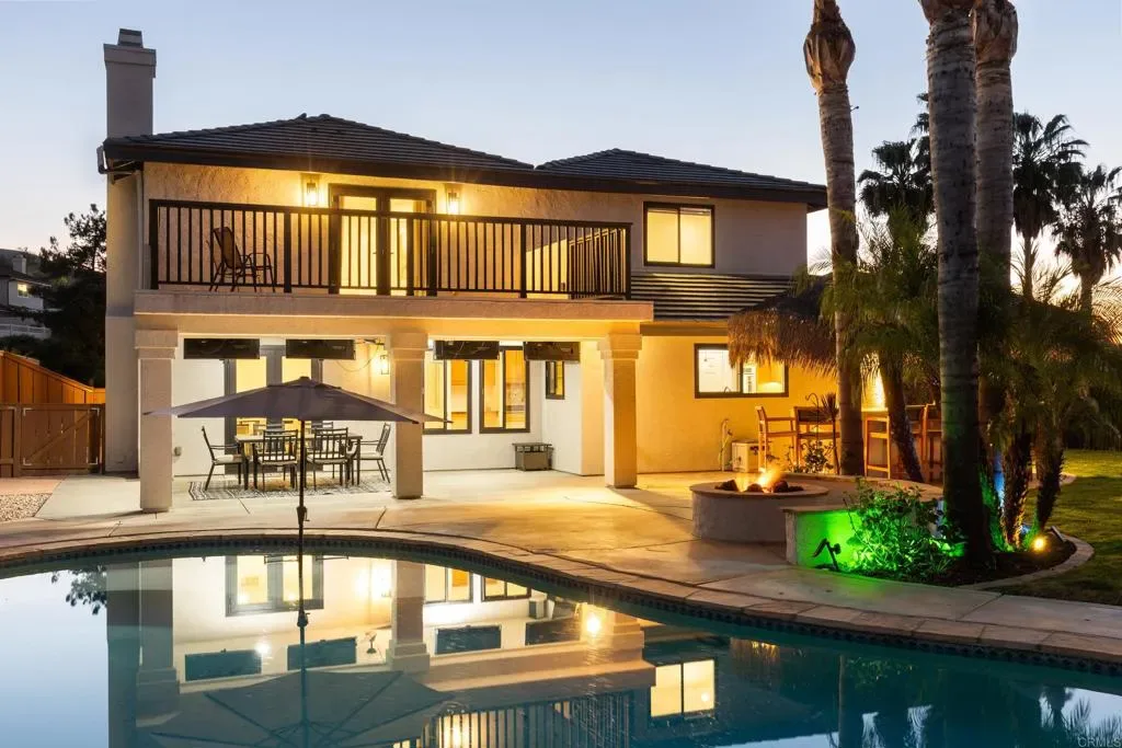 NO HOA! SANTEE STUNNER ON NEARLY HALF AN ACRE WITH VIEWS! Tucked at the end of a quiet cul-de-sac on a desirable corner lot, this beautifully upgraded home is an entertainer’s dream featuring sweeping panoramic hillside views and a resort-style backyard built to impress with a solar-heated pool and spa, gas fire pit, built-in BBQ, covered patio, and FIVE outdoor TVs—perfect for indoor-outdoor living, hosting gatherings, or enjoying game day in your own private oasis with fruit trees. The home also offers fully paid solar and over $100K in recent upgrades, including a new roof, dual-pane windows, updated flooring, newer A/C, and fresh interior and exterior paint. Step inside to soaring ceilings and a spacious chef’s kitchen featuring granite countertops, a large center island, double ovens, and stainless-steel appliances, all opening to bright, open-concept living spaces filled with natural light. The highly desirable floor plan includes a full bedroom and bathroom on the main level, ideal for guests or multigenerational living. Upstairs, the luxurious primary suite offers a private view balcony, spa-like bathroom with an oversized soaking tub, and a bonus room perfect for a home office, nursery, or flex space, plus two additional bedrooms. Additional highlights include RV parking, an oversized garage, energy-efficient features, and two whole-house fans. This rare property offers space, privacy, modern upgrades, and true Southern California lifestyle living.
