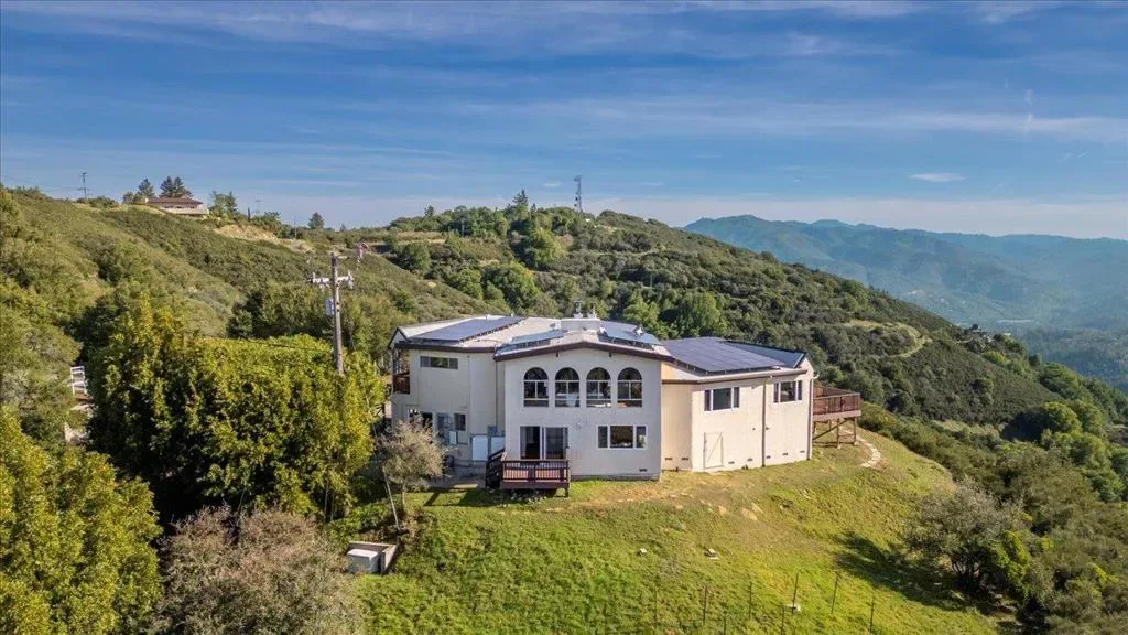 Luxury High-Tech Solar Home | Off-Grid Backup, NEM2, Gigabit Fiber. Ideally situated near downtown Saratoga’s restaurants, shopping, coffee, wine tasting, & more. Near top-ranked Saratoga schools! Experience an exceptional blend of stunning views & prime location in this Saratoga residence. On appx 2.3 acres, this 4 bedroom home offers ~2,688 sq ft of thoughtfully designed living space with breathtaking panoramic views stretching from Monterey Bay to the San Francisco Bay. The gourmet kitchen features a center island, shaker cabinetry, granite counters, & modern stainless appliances, seamlessly connected to the dining area & overlooking a massive deck & spectacular vistas -ideal for everyday living & entertaining. The expansive living room showcases vaulted ceilings, a fireplace, and dramatic picture windows that fill the home with natural light. The spacious primary retreat includes a walk-out balcony, en-suite bathroom with walk-in closet, creating a peaceful sanctuary with unparalleled outlooks. Enjoy movie nights in the separate family room complete with a projector screen! Smart, energy-efficient features include owned solar w/ 2 Tesla batteries, backup generator, 2 EV charging stations, newer roof, whole-home water filtration & ozone system. Relax in the bubbling hot tub.