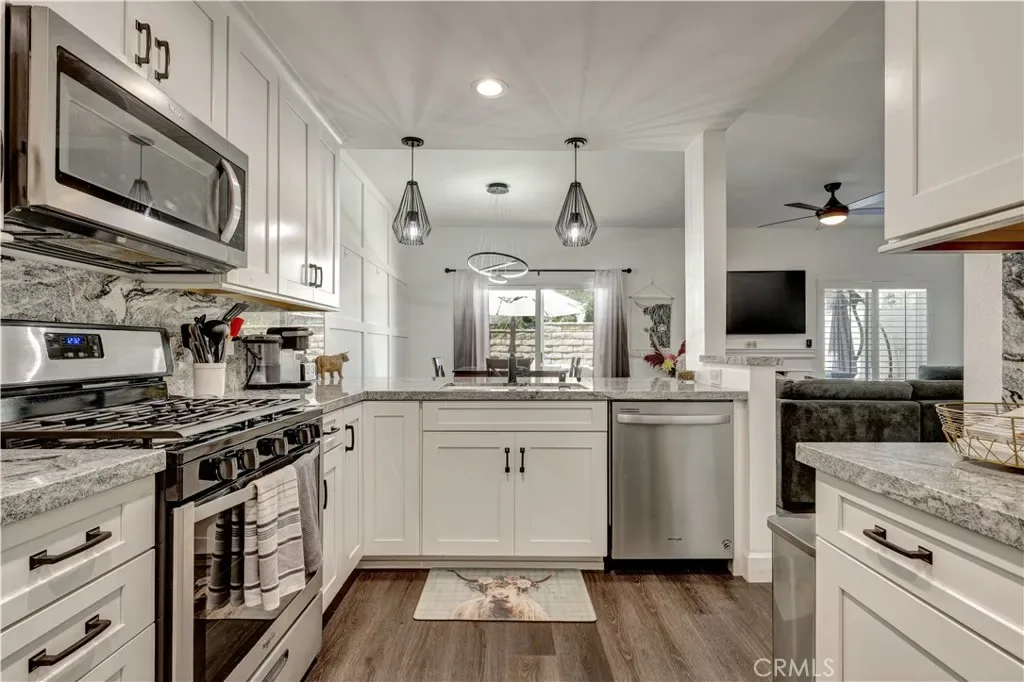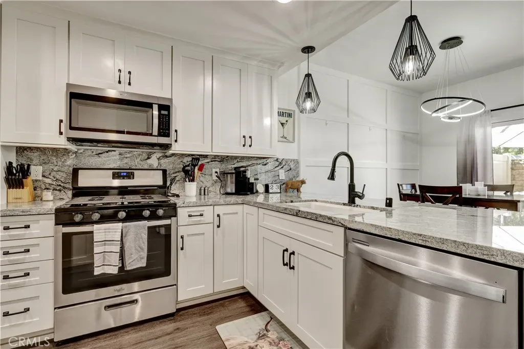 Beautiful and customized light and bright 3-bedroom, 2.5-bath townhouse located in a desirable Santa Clarita/Saugus community. This tastefully updated home features modern fixtures, stainless steel appliances, plantation shutters, newer dual pane windows, entry way pull out storage system, and high-quality vinyl plank flooring throughout. The spacious kitchen offers abundant cabinet and countertop space, making it perfect for cooking and entertaining.