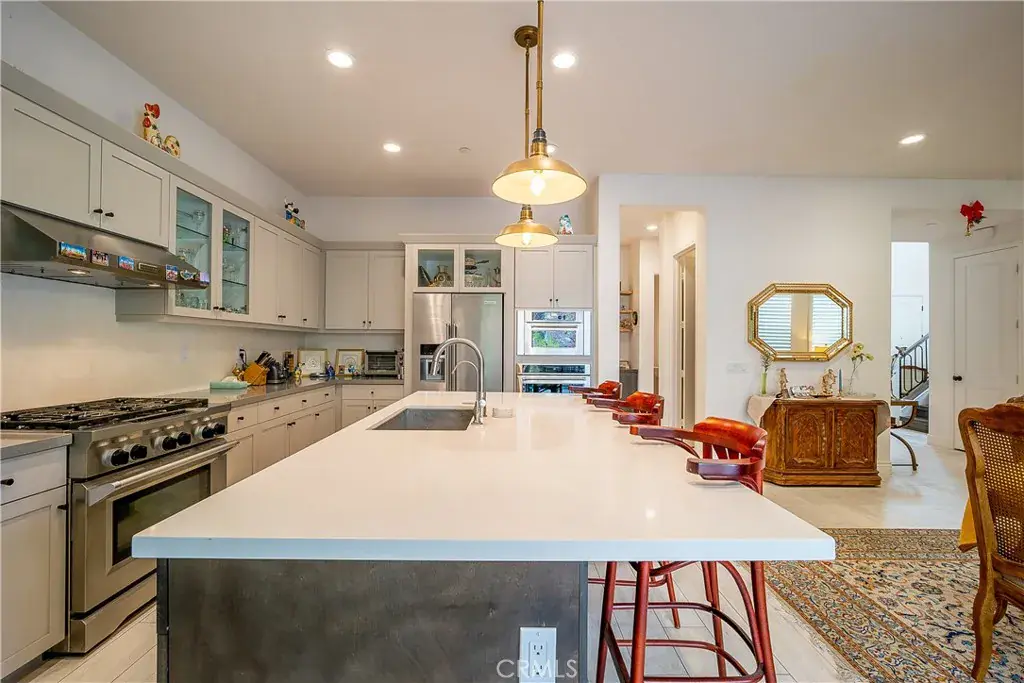 Discover this stunning contemporary home in the prestigious gated community of The Heights at Five Knolls, located in the heart of Santa Clarita. This beautifully designed two-story residence offers 4 bedrooms plus an office/bonus room (currently used as an office and easily convertible into a fifth bedroom), 3.5 bathrooms, and a spacious 3-car garage. Interior highlights include elegant tile and laminate flooring, a custom staircase, recessed lighting, and an open, light-filled floor plan. The luxurious primary suite features dual sinks, a walk-in closet, and a spa-inspired bathroom for ultimate comfort. Enjoy seamless indoor-outdoor living in your private, landscaped backyard oasis, complete with a high-end outdoor kitchen, stainless steel appliances, ambient lighting, and ceiling fans—perfect for entertaining or relaxing year-round. Residents enjoy access to resort-style amenities, including a clubhouse, sparkling pool, and spa, as well as nearby Golden Valley Park featuring a children’s playground and dog park. This exceptional home offers modern design, comfort, and lifestyle in one of Santa Clarita’s most desirable neighborhoods. A true must-see!