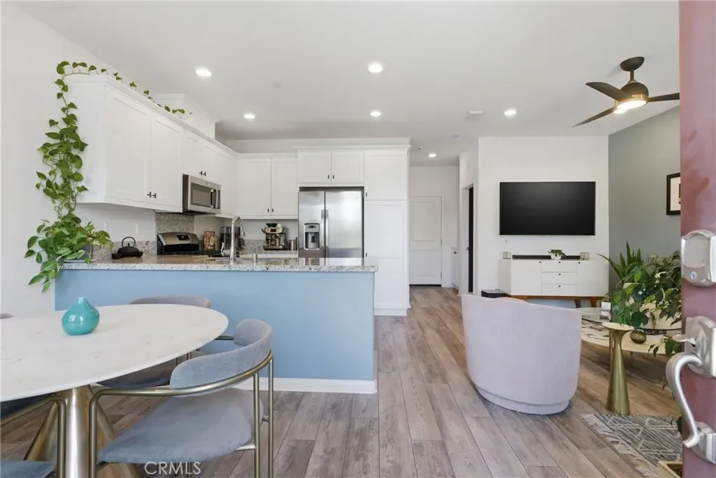 Welcome to the highly desirable Concord community in River Village, located in the heart of Santa Clarita. This beautifully maintained 2-bedroom, 2.5-bath townhome with a spacious loft offers the perfect blend of modern style, comfort, and convenience. This thoughtfully designed home features an open-concept floor plan with abundant natural light, stylish modern paint, beautiful laminate flooring throughout the main living areas, complemented by neutral carpeting in the bedrooms and loft. The kitchen flows seamlessly into the dining and living spaces, creating an ideal setting for both everyday living and entertaining, with direct access to a private front patio—perfect for morning coffee or evening relaxation.