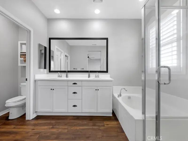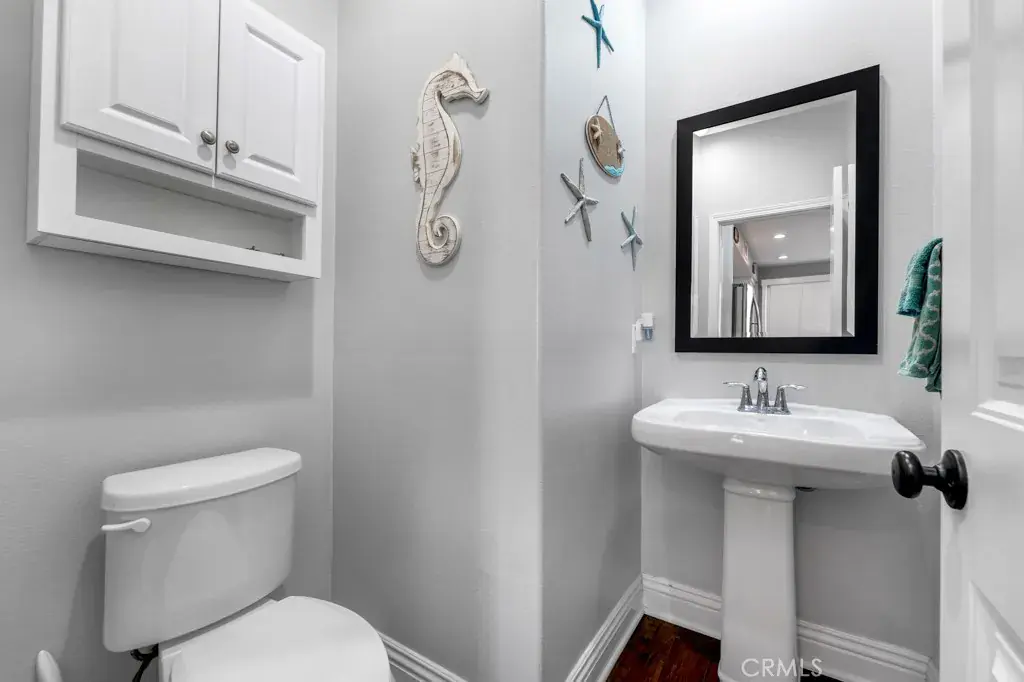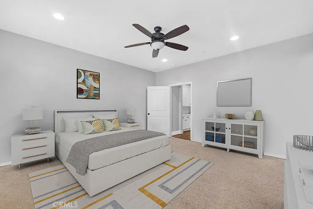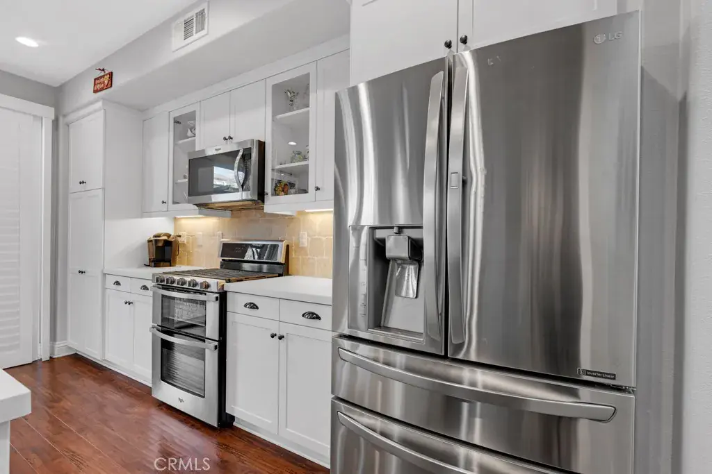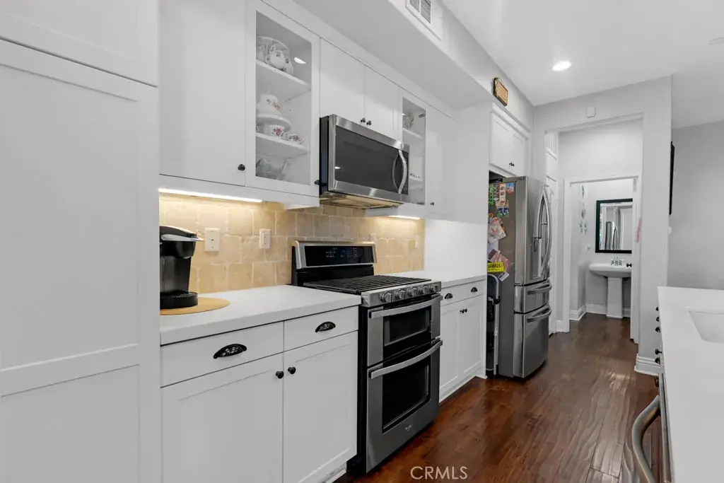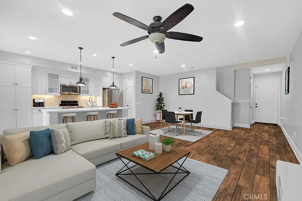This Stunning Townhome in the Gated River Village Community of Santa Clarita offers a Spacious and Modern Living Space. The Property Offers Three Bedrooms and Two and a half Bathrooms with Approximately 1690 Square Feet. The Downstairs Area includes a Living Room, Galley Kitchen, Dining Area and a Half Bathroom. The Kitchen is equipped with Stainless Steel appliances, Quartz Counter-tops, White Cabinets, and a Pantry-Closet. Laminate Floors run throughout the Downstairs and Upstairs, along with White Shutters for a Clean and Contemporary look. Moving Upstairs you will find a Large Office Niche, an Additional Counter Area with Cabinets perfect for Storage Capabilities, Laundry Room, the Primary Bedroom and Full Bathroom which Includes a Large Walk in Closet, Dual Vanity Sinks, Separate Tub & Shower, and White Cabinets with a Quartz countertop. There are Two Guest Bedrooms and another Guest Bathroom with Dual vanity Sinks, a Quartz Counter top, White Cabinets, and a Tub-Shower. The Laundry Room Upstairs provides Convenience for Household chores. Residents can Enjoy the patio for Relaxation while Sitting under the Pergola on a hot Summer day, or take a short Walk across the street to the Beautiful Resort Style Pool, Spa or take the Children to Enjoy the Park with Play Structure. The Condominium’s Location Offers easy Access to Nearby Shops and Restaurants, while being Nestled in the Beautiful Hills of Santa Clarita. Overall this Property combines Comfort, Style, and Convenience making it a Desirable place to call Home in Santa Clarita’s River Village Community.