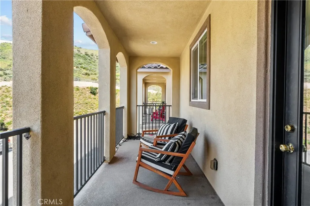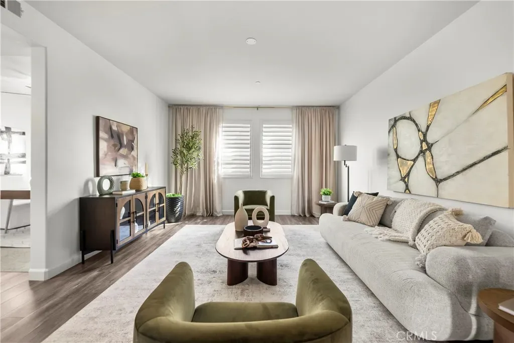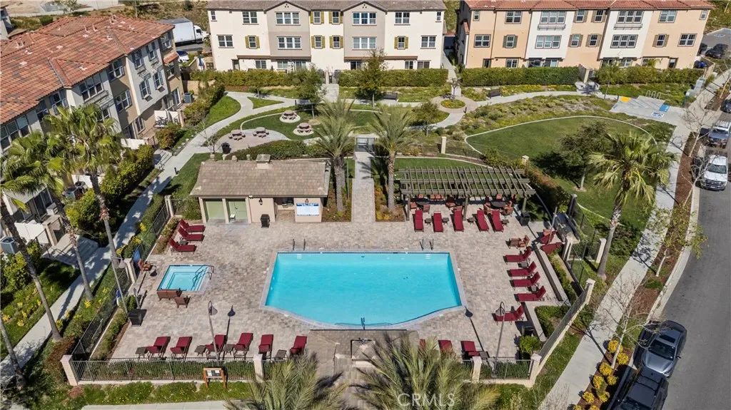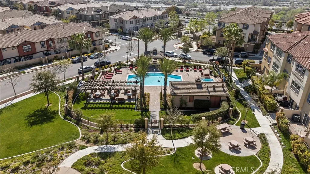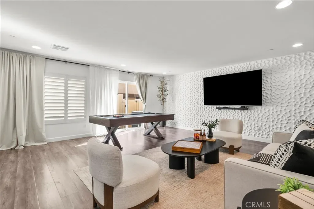 Located in the gated community of River Village, this spacious 4-bedroom, 4-bathroom tri-level townhouse offers flexible living, mountain views, and thoughtful upgrades throughout. The entry level welcomes you with a formal foyer that opens to a generous living room—perfect for relaxing or entertaining—along with a full bathroom and a private patio featuring a small turf yard, ideal for outdoor lounging, pets, or a bit of greenery without the maintenance. Laminate flooring and recessed lighting create a clean, modern feel. The second floor features a bright open-concept layout with 9-foot ceilings. The kitchen includes granite countertops, white shaker cabinetry, stainless steel appliances, and ample prep space, flowing easily into the main living and dining areas. This level also offers a bedroom and full bathroom, plus a long balcony with mountain views—perfect for morning coffee or evening sunsets. Upstairs, the third floor hosts three additional bedrooms and two bathrooms, including the spacious primary suite with custom closet organization. A temperature-controlled wine cellar adds a unique and unexpected feature that’s perfect for wine lovers and entertaining. Additional highlights include direct access to a two-car garage with built-in cabinets for extra storage. Residents enjoy River Village amenities including a gated pool and spa, barbecue and picnic areas, and a playground, creating an easy, community-oriented lifestyle. Move-in ready with wonderful pride of ownership, this home offers the comfort, flexibility, and location today’s buyers are looking for.