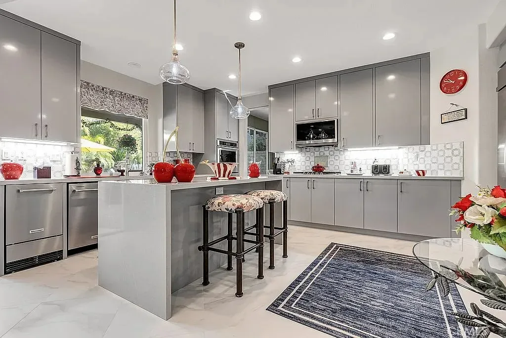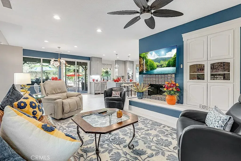 Your kitchen was taken down to the studs in 2025 and designed to work with any color you choose as it has a blend of various shades of cool grays and cream in countertops and cabinets that extend clear to the ceiling. New soft white porcelain floors throughout kitchen, family room, laundry and hallways. Kitchen offers an island and separate informal eating area with designer chandelier. Family room has new window shades and fireplace tile. Home has two full and two half baths, one half bath serves the pool with outside entry, no wet feet in your home. Enjoy a private, formal dining room with gold and crystal chandelier. Fourth large bedroom offers wall to wall built ins for alternate choice as office.