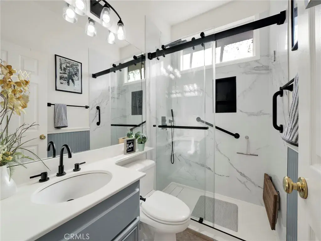 A versatile downstairs room, ideal for a home office or guest space is complemented by a remodeled bathroom with walk-in shower, offering exceptional flexibility and convenience.