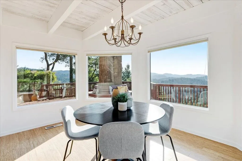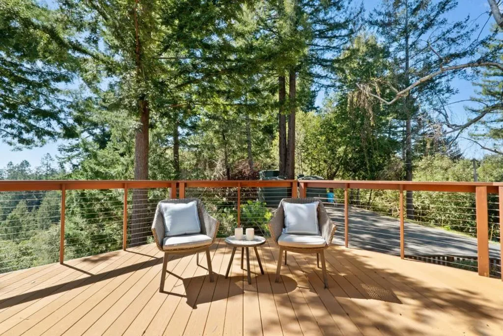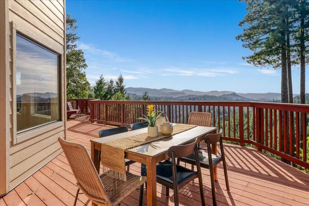For the buyer who wants to disappear without being disconnected, this extraordinary retreat delivers a rare balance of privacy, beauty, and access. Perched above the treetops with breathtaking 40-mile views, the home lives in harmony with its natural surroundings, offering a true sense of escape just minutes from Highway 17. Expansive picture windows flood the interiors with light and frame sweeping redwood and ridgeline vistas, creating a calm, sanctuary-like atmosphere throughout. The kitchen is warm and inviting, with granite countertops, custom cabinetry, and high-end appliances, flowing seamlessly into an intimate dining area surrounded by panoramic views. The spa-inspired primary bath offers a serene place to unwind, while outdoor living is exceptional. An expansive deck with a hot tub, raised garden beds, and a one-of-a-kind bench wrapped around majestic redwoods creates unforgettable spaces to relax and recharge. Meticulously maintained and thoughtfully improved, this home is ideal for remote work or commuting to Silicon Valley or Santa Cruz, a place to reset, recharge, and live above it all. Not just a home, but a shift in how you live, where space, light, and perspective become part of your everyday experience.