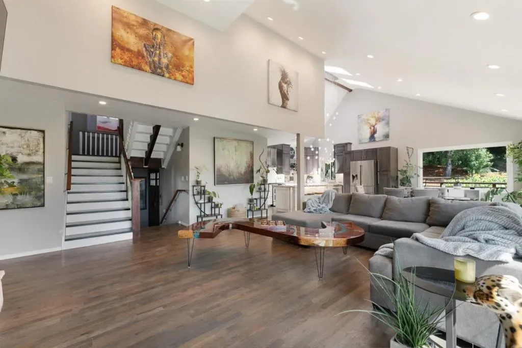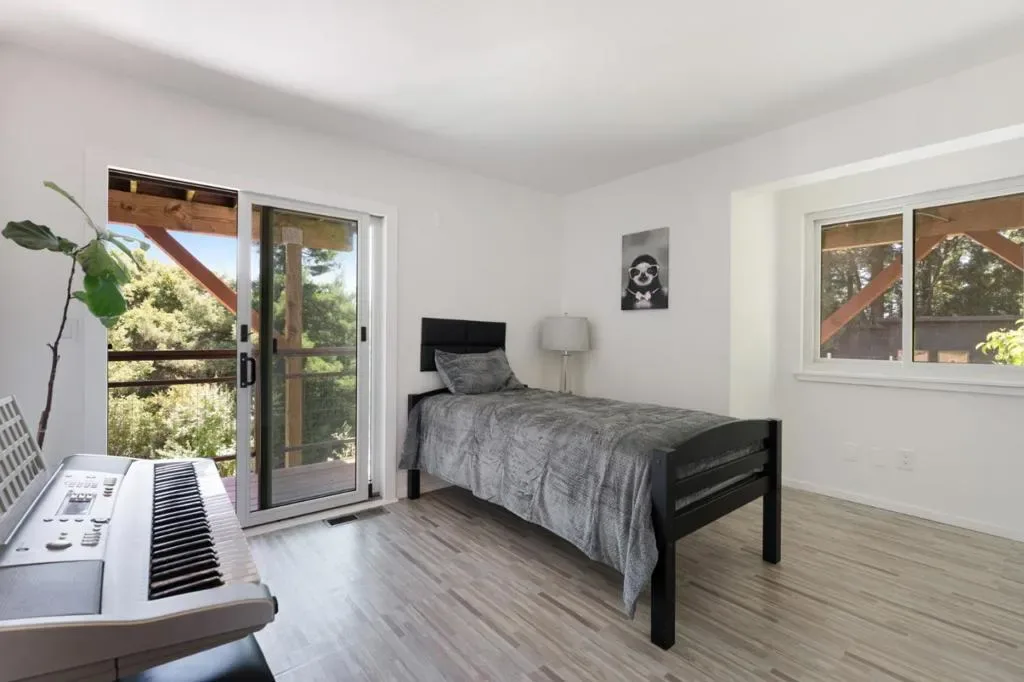 Great for multigenerational living! Tucked into the quiet beauty of Scotts Valley, but just minutes from town, this extraordinary estate invites you to live without compromise. At its heart, a meticulously curated 5+bed/3 bath main residence that is designed to live as one grand home or two distinct spaces. With spacious and sun drenched decks off the bedrooms and living spaces, enjoy the true meaning of indoor-outdoor living. Primary suite is on top level with its own laundry, bathroom, office and loft space. Lower level has 3 rooms, 1 bathroom, living area, full wet bar, and deck with hot tub! Conveniences such as large home theatre will make it so you never want to leave home. From the private vineyard to the mature fruit trees, sauna, hot tub, and multiple outdoor entertaining areas, step into a world of your own where you really can “have it all” at 55 Hidden Meadow.