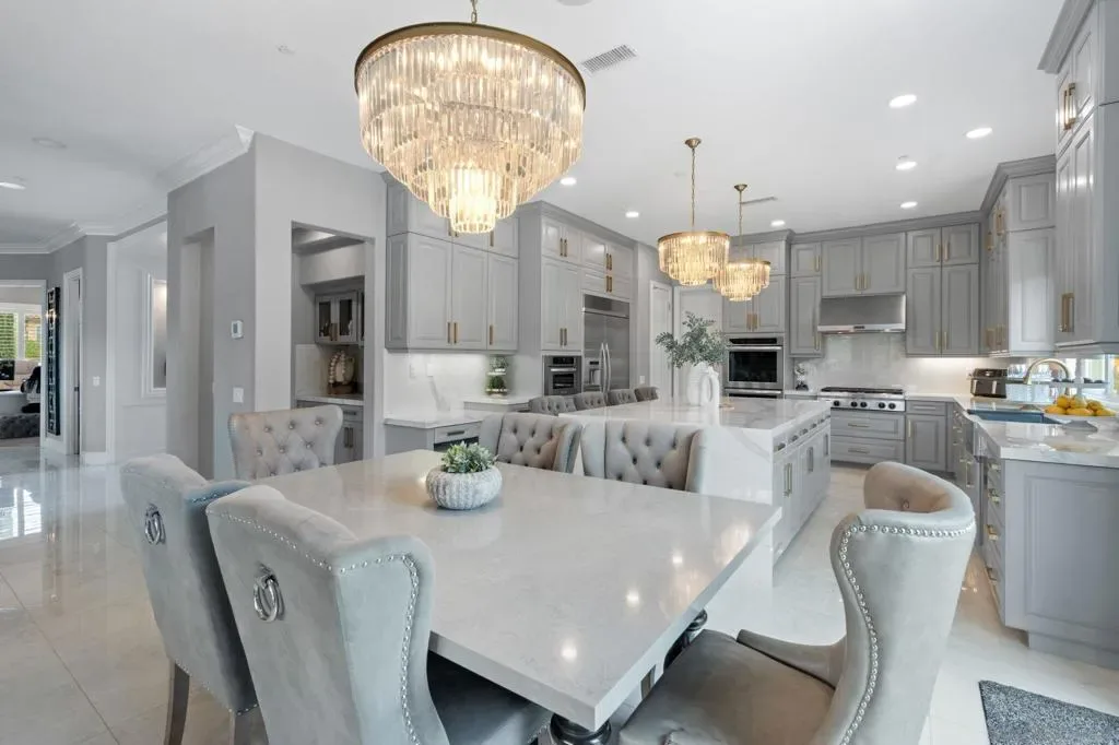 Welcome to one of the most exceptional homes ever offered in Stonebridge Estates, showcasing impeccable upgrades and a truly elevated luxury lifestyle. A grand double-door entry opens to a dramatic dual staircase with a statement chandelier, setting the tone for the elegance throughout. Beautiful tile flooring spans the main level, complemented by coffered ceilings and custom wall paneling that add depth and sophistication. The beautifully updated chef’s kitchen features high-end finishes and is designed for both everyday living and seamless entertaining. The home offers 5 spacious bedrooms, one currently configured as a private movie theater, including a main-level bedroom with its own en suite bathroom. In addition, there is a dedicated office and a separate home gym, both of which can serve as optional bedrooms. Each bedroom includes its own en suite, while the stunning primary suite feels like a private retreat, complete with a spa-inspired bath, freestanding soaking tub, electric fireplace, and a custom built-in entertainment center. Additional highlights include a striking saltwater fish tank and custom built-in entertainment center in the family room. The resort-style backyard is nothing short of spectacular, featuring a gorgeous pool with dramatic fire bowls, a cabana with fireplace and TV, a full outdoor kitchen with BBQ, pizza oven, and bar seating, plus a half basketball court, all set against serene canyon views. Designed to truly have it all, this home offers an unmatched blend of luxury, comfort, and functionality, one of finest properties ever in Stonebridge