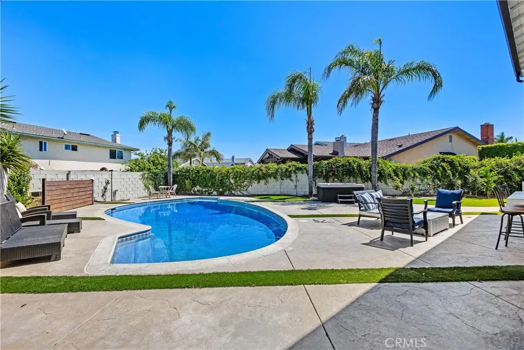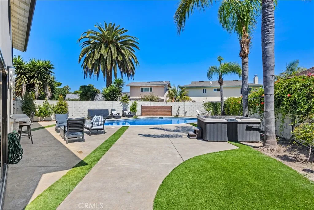 Welcome to your own private resort in the highly sought-after community of College Park East, set on one of the largest lots in the neighborhood. This completely reimagined home offers a rare combination of modern design, functional living, and an exceptional outdoor lifestyle. The backyard, is truly the showstopper with an expansive, private retreat designed for both relaxation and entertaining. Enjoy a sparkling pool, above-ground spa, easy-care landscaping, and generous outdoor living space with multiple areas to host, lounge, and unwind. The size of this lot creates a sense of openness and privacy that is incredibly hard to find in this area, making it feel like your own personal getaway. Inside, the home is equally impressive. Natural light fills the open-concept living spaces, highlighting the high-end finishes. Everyday living is made easier with thoughtful touches throughout, including a built-in desk for working from home, a custom wet bar for entertaining. The garage has also been upgraded with epoxy flooring and added storage. The beautifully designed kitchen features ZLINE Signature appliances, quartz countertops, custom cabinetry, and a breakfast bar with pass-through access to the backyard. The home has an added bonus of two primary suites. The main suite serves as a peaceful escape with a fireplace, walk-in closet, and a spa-inspired bathroom featuring a soaking tub, dual shower, and double vanity. Every detail has been thoughtfully upgraded, including beautiful bathrooms, A/C, new water heater, pool equipment, luxury vinyl flooring, epoxy garage floors, and smart home features such as Nest-controlled heating and air conditioning. Located near Old Ranch Country Club, Seal Beach Tennis & Pickleball Center, and local parks, just minutes from shopping, dining, and the beaches of Seal Beach, this home offers both convenience and a true sense of lifestyle that is comfortable, inviting, and ready to be enjoyed.