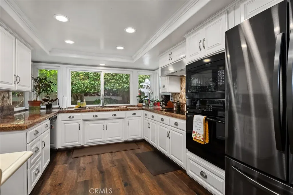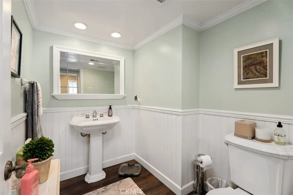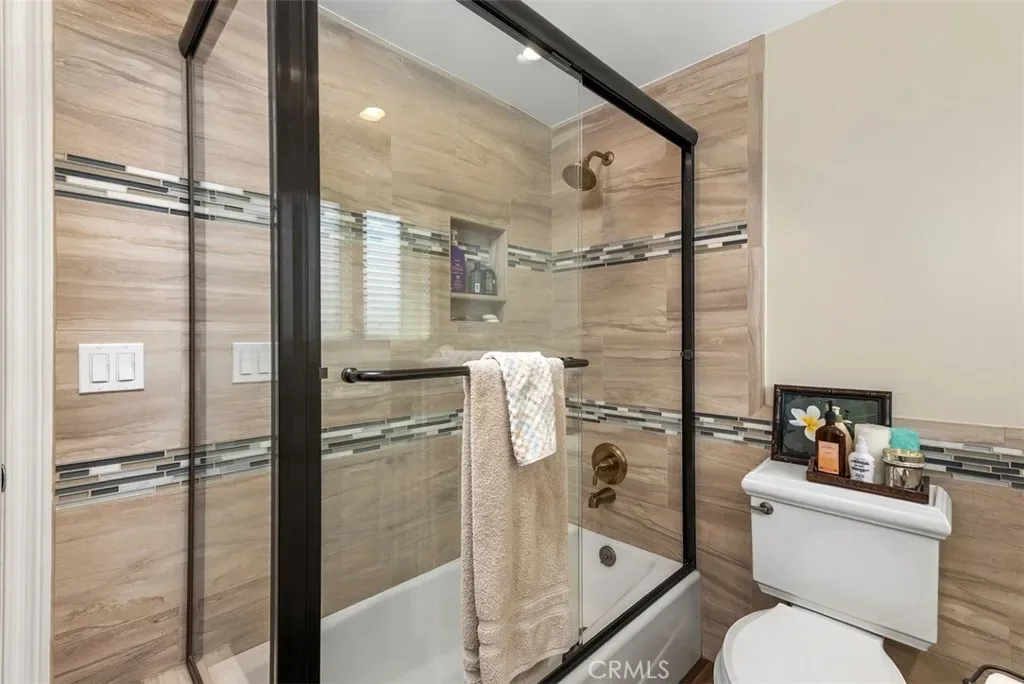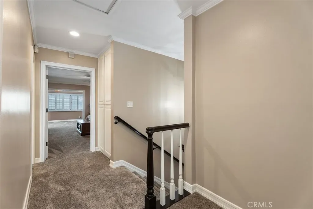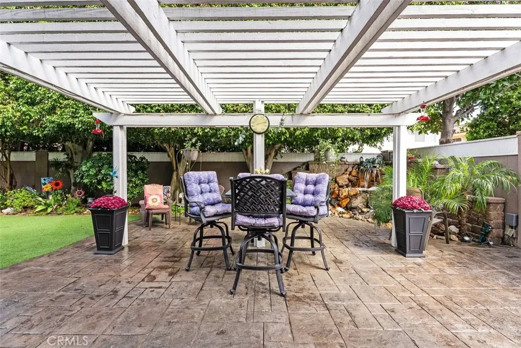 Welcome home to 3580 Teaberry Circle, located in the highly sought-after neighborhood of College Park East in Seal Beach. This beautiful 4-bedroom, 3-bath Cornell model offers approximately 2,791 square feet of living space and sits on a 5,200 square foot lot. Meticulously updated over the years, this home features custom cabinetry, upgraded PEX plumbing, recessed lighting, crown molding, central heating and air conditioning, plantation shutters, a Whole House Soft Water System and Reverse Osmosis, and many other thoughtful upgrades throughout. As you enter, you’re welcomed by a spacious living room and dining area with custom built-ins, creating an inviting space for gatherings and entertaining. The kitchen features custom wood cabinetry with pull-out drawers, granite countertops, a pantry with pull-out shelving, luxury vinyl flooring, and a cozy breakfast area perfect for morning coffee. A large window overlooks the private and lush backyard. Just a step down is the family room, complete with wood flooring, a beautiful stone fireplace, and a large built-in cabinet. French doors open to the patio and backyard, with artificial turf, lush landscaping, waterfall, blending indoor and outdoor living. Down the hall you’ll find the downstairs bedroom with wood flooring and plantation shutters—perfect as a guest room or home office. Adjacent is the updated powder room featuring wainscoting, fresh paint, and a custom mirror. Upstairs are three additional bedrooms, including the spacious primary suite with 2 closets, one a walk-in closet featuring custom organizers, cedar lined and an updated bathroom complete with tiled walk in shower, granite countertops and tile flooring. The original balcony has been enclosed to create a wonderful bonus space ideal for an office, reading nook, or sitting area. The two additional bedrooms are generously sized and each include walk-in closets with custom organizers. The hallway bathroom has a shower/tub combo, along with granite countertops, a bluetooth speaker system and wood shutters. The attached garage includes custom cabinets, built-in shelving, finished flooring, and abundant storage. Located within the award-winning Los Alamitos School District, this home is just minutes from beaches, parks, shopping, restaurants, and convenient freeway access. College Park East also features its own parks and tennis courts, making it a wonderful community that truly captures the best of Seal Beach living.