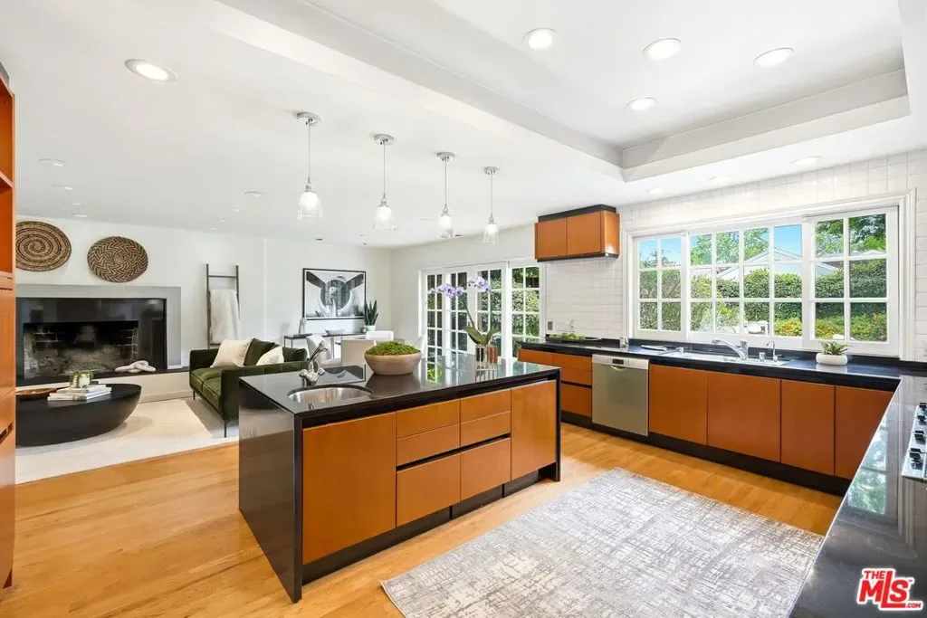 Located in one of the most desirable areas of Sherman Oaks, this gated residence is a true entertainer’s dream. Featuring an open floor plan filled with natural light, the home welcomes you through custom double doors into a bright foyer with French doors spanning the rear of the home.Vaulted ceilings and a spacious living room with fireplace create an inviting atmosphere, while the family room offers a decorative updated fireplace and views of the private backyard. The Italian-designed kitchen is equipped with black granite countertops, SieMatic cabinetry, stainless steel built-in appliances, imported tile backsplash, and a custom center island with recessed lighting.The home offers generously sized bedrooms and a spacious primary suite with a large walk-in closet and en suite bath featuring dual vanities and a walk-in shower.The backyard is quiet and private, complete with beautifully landscaped grounds and a solar-heated custom pool perfect for relaxing or entertaining.