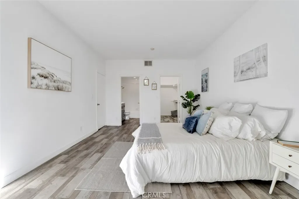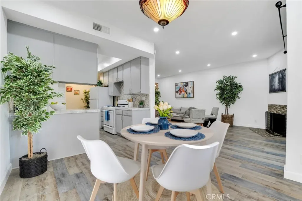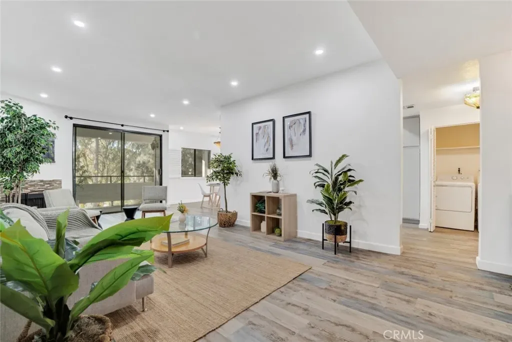 Modern elegance blends seamlessly with resort-style living in this stylish 2-bedroom, 2-bath condo set in the heart of Sherman Oaks. The expansive living area showcases plank flooring, a cozy fireplace, wet bar, and dining space, all flowing effortlessly to a generous balcony overlooking tranquil tree-lined views. The refreshed kitchen provides abundant cabinetry and a convenient in-unit laundry area. Retreat to the serene primary suite, complete with its own private balcony, a walk-in closet, and a spa-inspired bath featuring a deep soaking tub. Situated in a beautifully landscaped, resort-like community, residents enjoy two sparkling pools, a fitness center, and an inviting clubhouse—just minutes from premier shopping, dining, and all that Sherman Oaks has to offer.