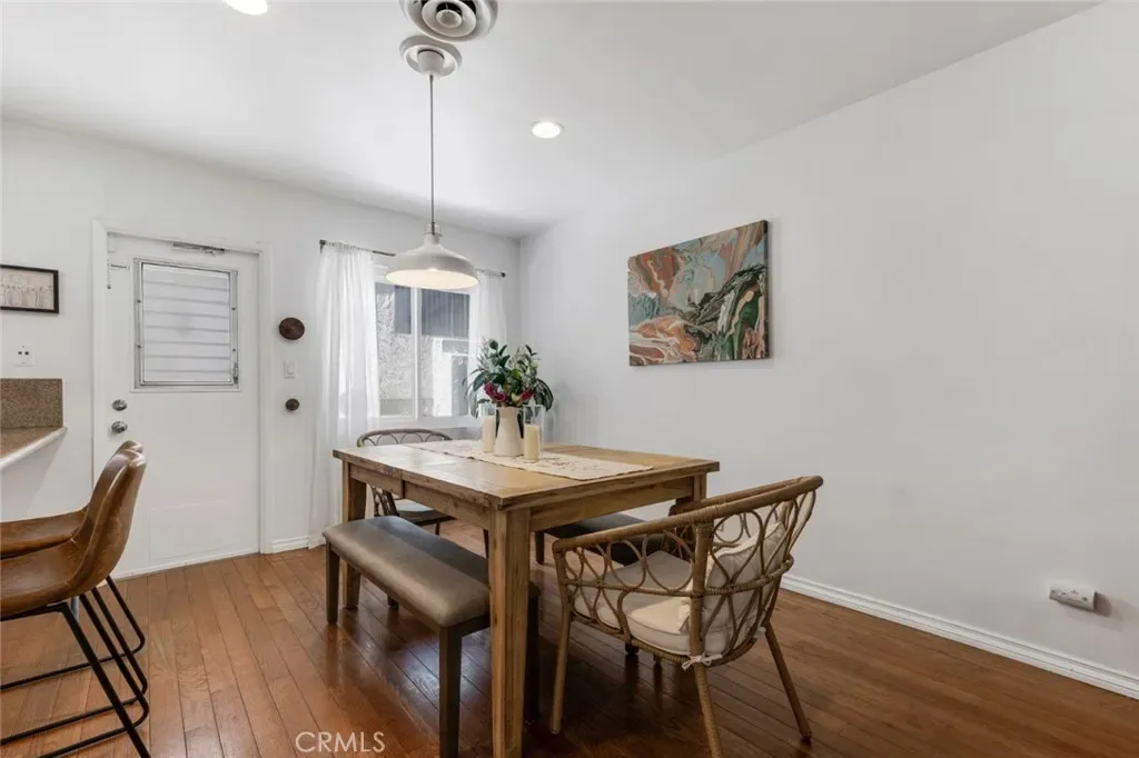 Beautifully maintained and thoughtfully updated 2 bed, 2 bath, 2-story townhome in a small, well-kept Sherman Oaks community, offers the ease of move-in ready condition and the everyday convenience of one of LA’s most loved neighborhoods. Gated entry opens to a private front courtyard with budding bougainvillea tree, perfect for morning coffee or evening entertaining. Enter into a bright, spacious, open floor plan living space with hardwood floors, recessed lighting, and abundant natural light throughout. The living room offers a view of the front courtyard through the large picture window; a generous storage space tucked away; and a unique alcove for display, kids play, pet area, or other creative use. Move seamlessly into the dining area and adjacent kitchen, fully equipped with granite counters, ample white cabinets, breakfast bar seating, and a convenient, in-unit laundry area. A remodeled downstairs ¾ bath features stylish hex-tile flooring, a pedestal sink, and a contemporary updated shower ideal for guests. Upstairs, two spacious bedrooms offer hardwood floors, recessed lighting, and contemporary ceiling fans. The bright primary bedroom boasts a dressing area and extra-large picture window while the second bedroom offers a closet with custom built-ins for effortless storage efficiency. They share a completely remodeled full bath with hex-tile floors, dual-sink vanity, and an oversized spa-style shower with multiple shower heads. The HVAC unit was recently replaced, and the property has one assigned parking space in a community carport with additional storage above. HOA dues also include water, trash, and sewer, plus a recently renovated community pool and appealing, drought-conscious landscaping in a communal front area. Situated moments from Ventura Blvd’s dining and shopping, neighborhood parks, and easy access for commuting throughout LA, this is a property not to be missed!
