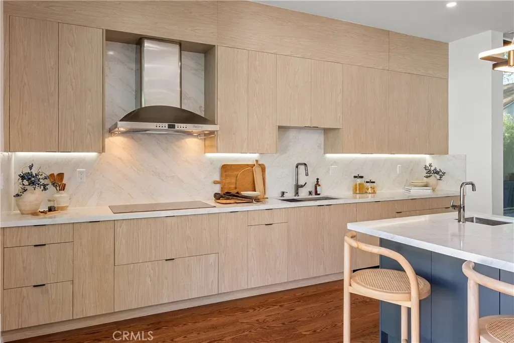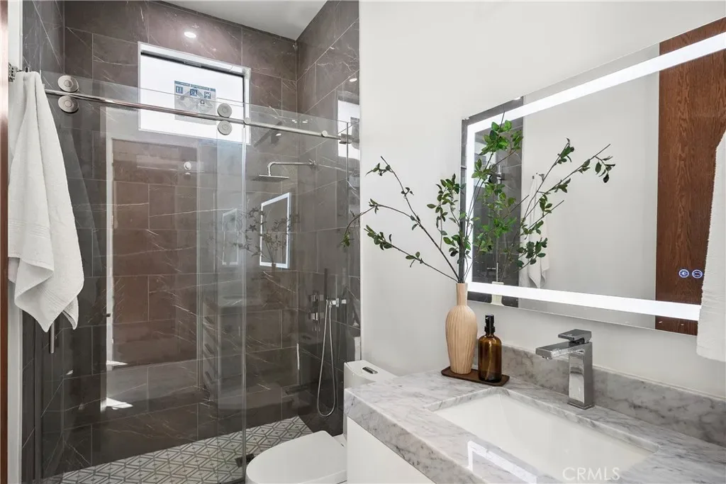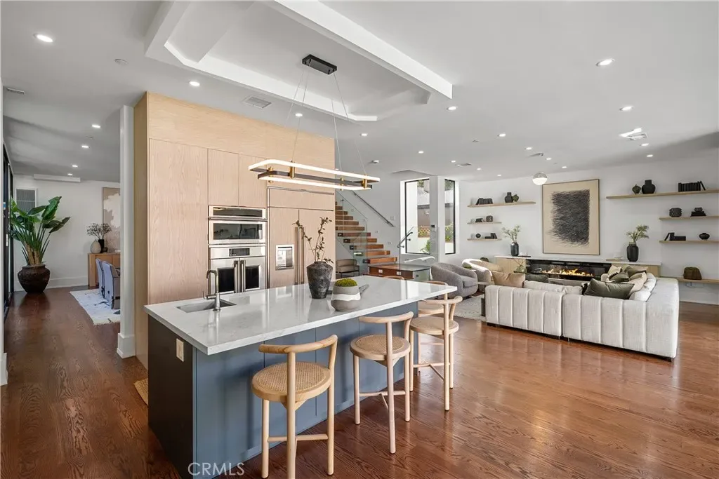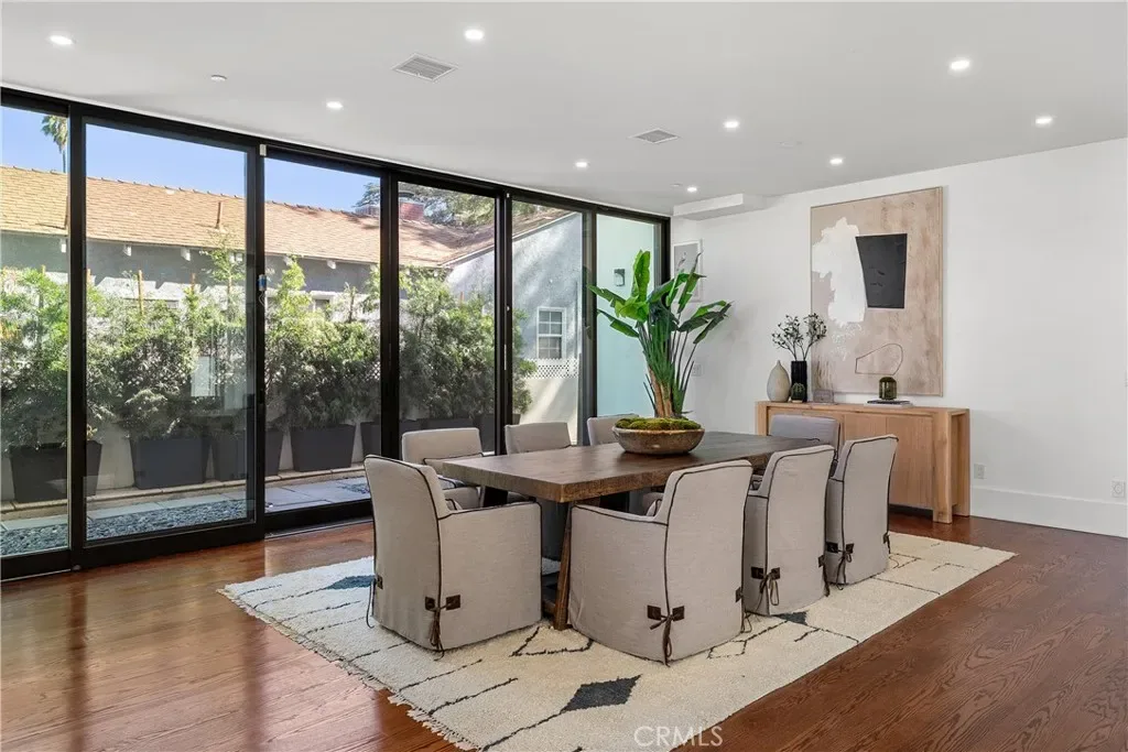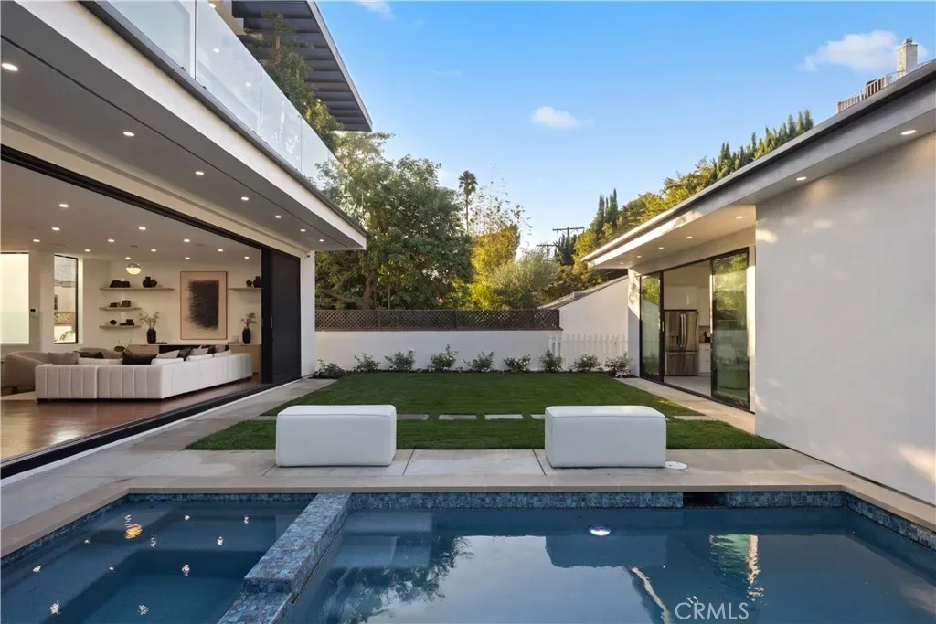 Situated South of the Boulevard on one of the most desirable streets in Sherman Oaks, this newly constructed gated estate offers a 5-bed, 6-bath main house and 1-bed, 1-bath ADU. Designed for modern living, the bright and airy open-concept floor plan is highlighted by lofty ceilings and walls of glass that flood the space with warm natural light. A culinary enthusiast’s dream, the gourmet kitchen comes equipped with top-of-the-line Monogram appliances, quartz countertops and a large island with bar seating. The spacious family room features a sleek fireplace and floor-to-ceiling sliding glass door that spans into the kitchen, seamlessly extending your living space outside for true indoor-outdoor living. Head outside to your serene backyard retreat, where you can take a refreshing dip in the sparkling pool/spa, entertain guests in style or relax in total tranquility. Rounding out the main level is a formal living/dining room with a built-in wine cabinet and additional oversized sliding glass door that opens to a side courtyard, along with an ensuite bedroom and powder bathroom. Ascend the floating staircase to find four generously sized ensuite bedrooms and a dedicated laundry room. Unparalleled luxury awaits you in the expansive primary suite, which boasts a private patio, custom walk-in closet and lavish ensuite bathroom, complete with a soaking tub, oversized rainfall shower, smart toilet and double vanity. At the rear of the property, a versatile 1-bed, 1-bath ADU with a living room and full kitchen provides the perfect space for extended family, guests, an office or home gym – the possibilities are endless. Additional highlights include solid hardwood floors, a security system, central vacuum, high end Fleetwood pivoting front door, two-car garage with a frameless glass door and a gated driveway. Perfectly positioned in the heart of Sherman Oaks, this property is only moments away from trendy restaurants and boutique shops found along Ventura Boulevard, and offers easy access to the Valley, Westside, 101/405 freeway and so much more.