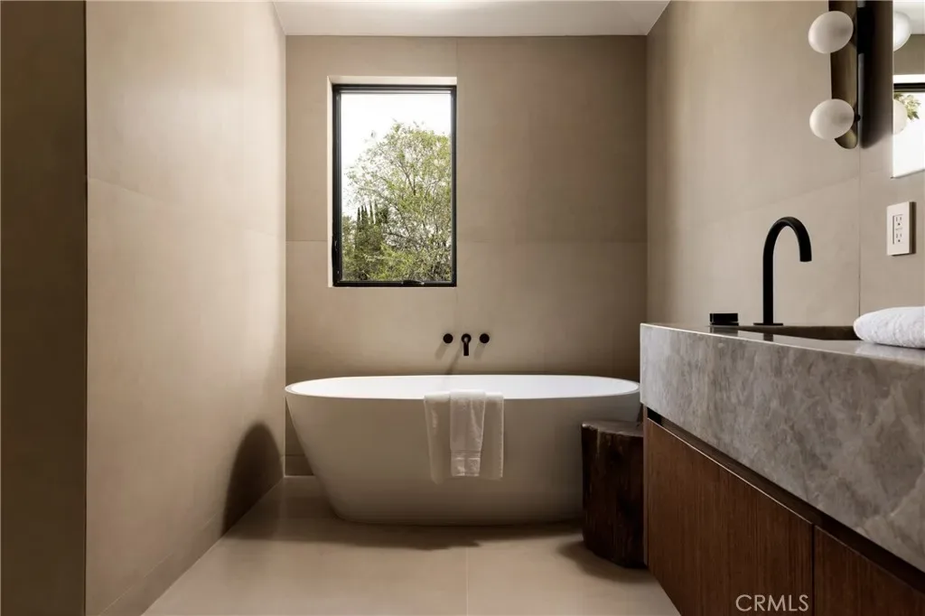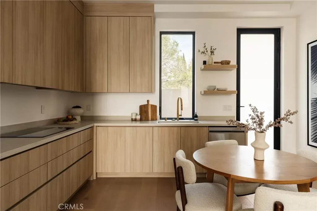Situated behind private gates on a sprawling 9,000+ sq. ft. corner lot, this newly constructed architectural estate boasts an attached 1-bed, 1.5-bath ADU. Designed for modern living, the open-concept main level flows seamlessly from the spacious living and dining area into the gourmet chef’s kitchen, outfitted with professional-grade appliances, sleek custom cabinetry, a massive island and walk-in pantry. Two oversized sliding glass doors effortlessly extend the living space to the covered patio, creating a seamless indoor-outdoor living experience. The backyard is a true entertainer’s retreat, showcasing a resort-style pool and spa, fully equipped outdoor kitchen and privacy hedges that surround the property. Completing the main level is an ensuite bedroom and chic powder bathroom with a one-of-a-kind stone sink. On the upper level, you’ll find four generously sized ensuite bedrooms, a dedicated laundry room and spacious loft area that leads out to an expansive balcony. The luxurious primary suite features a custom walk-in closet and sumptuous ensuite with a soaking tub, large glass-enclosed shower and double vanity. The ADU offers exceptional versatility with its own private entrance, a living room, full kitchen, one bedroom and two bathrooms, perfect for guests, extended family or as additional living space. Further highlights include high ceilings throughout, a two-car garage and fully integrated smart home system that manages lighting, climate, audio and security. Ideally located within the top-rated Kester Avenue Elementary School District, just moments away from Ventura Boulevard’s premier shops and restaurants, as well as the Sherman Oaks Galleria.