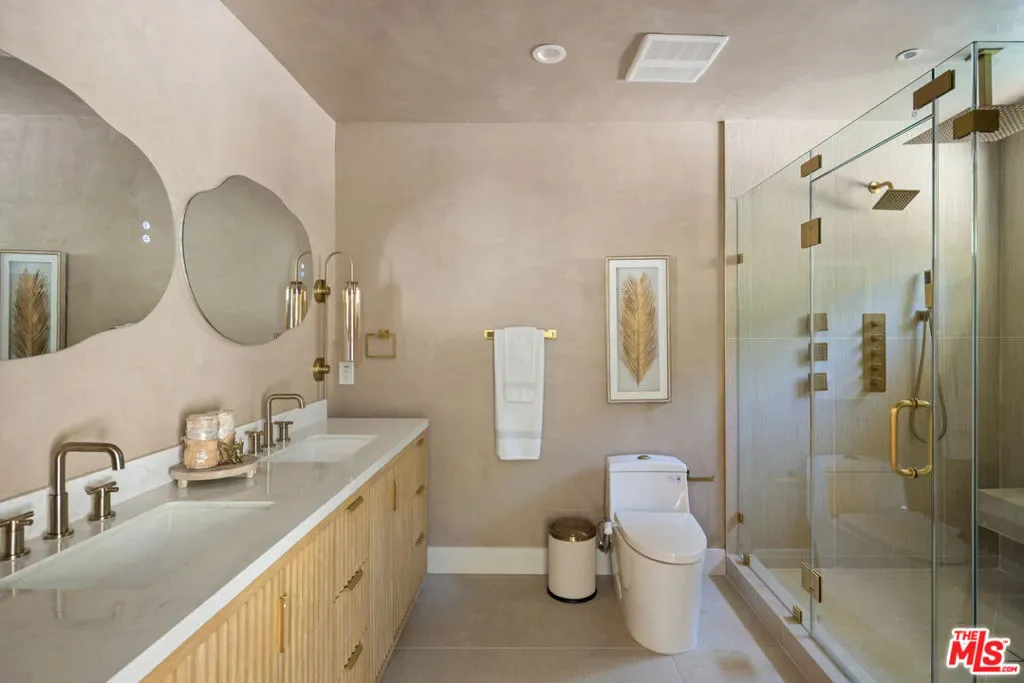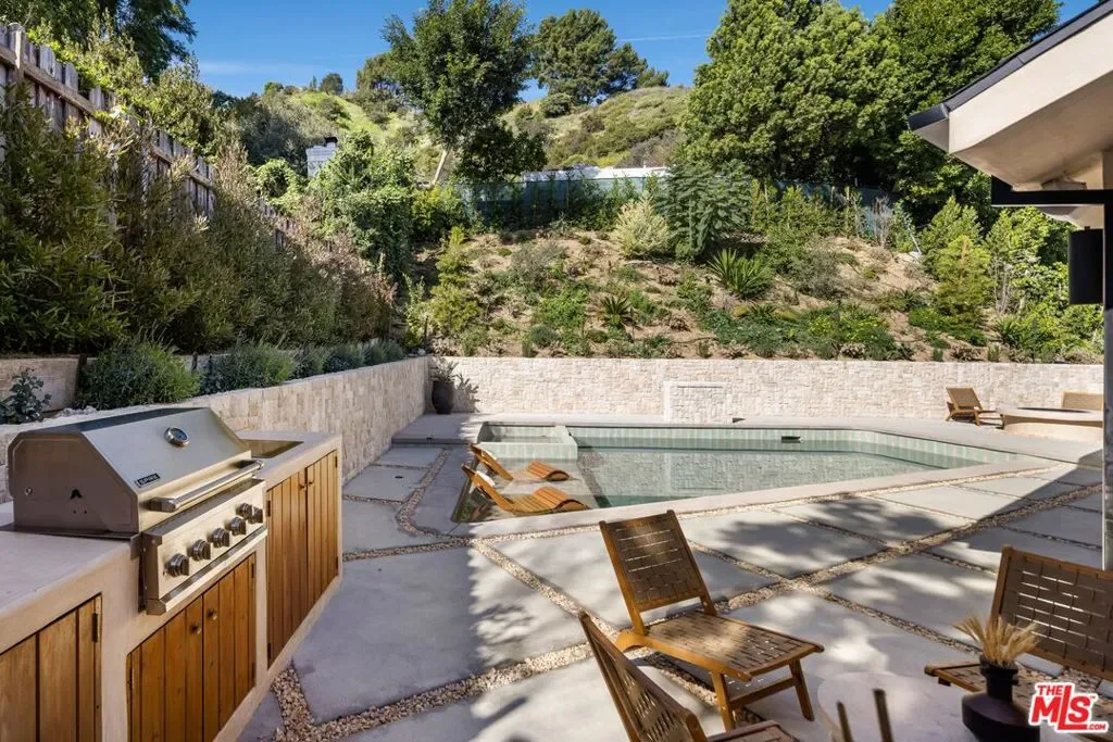 Nestled in the coveted hills of Sherman Oaks, this fully renovated contemporary home offers 4 bedrooms and 3.5 baths with the perfect blend of luxury, style, and functionality. Step through custom double entry doors into an elegant living space highlighted by a stunning travertine porcelain slab fireplace and soaring 11-foot ceilings – wide-plank engineered wood floors flow throughout, while each bathroom showcases a refined Roman clay finish. Expansive Fleetwood sliding doors open to a private resort-like backyard with pool, spa, custom ledger stone throughout, a Pentair system and a full outdoor kitchen including a built-in barbecue, sink, and refrigerator surrounded by mature ficus throughout, ideal for effortless entertaining. This smart home is fully integrated with advanced RTI and ADT systems, featuring upgraded switches, Episode speakers, security cameras, and a premium whole-house audio setup. Thoughtfully designed and move-in ready, this home caters to the most discerning buyers seeking a turnkey, fully furnished sanctuary in one of the Valley’s most desirable neighborhoods.