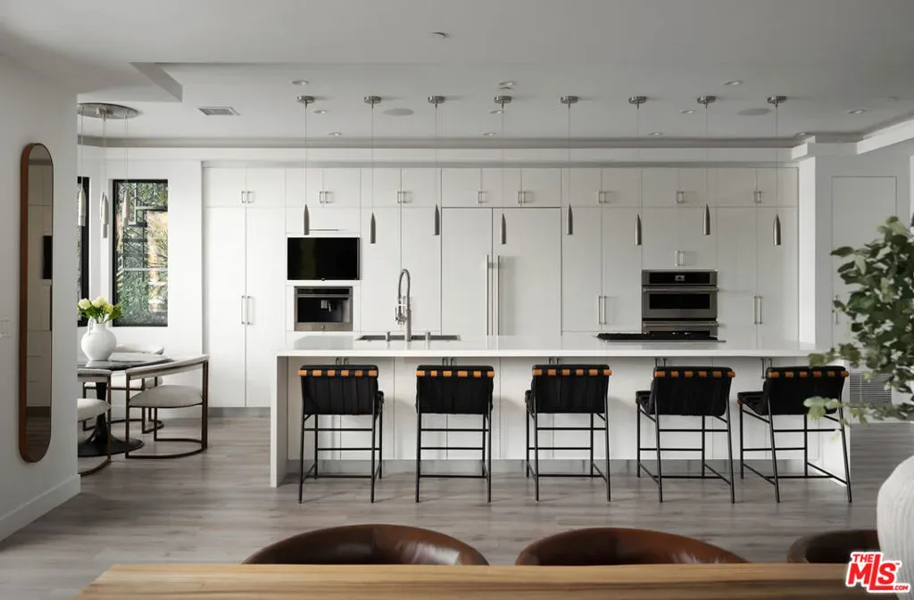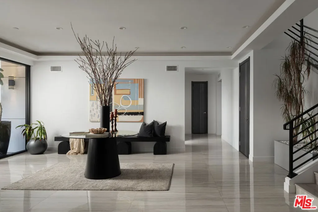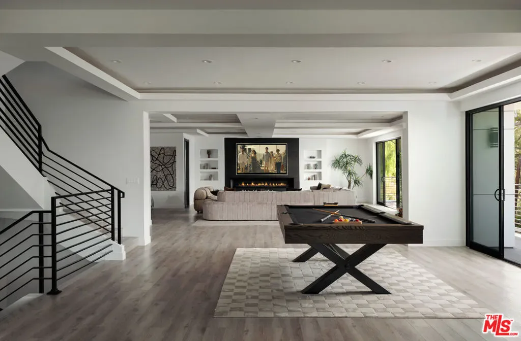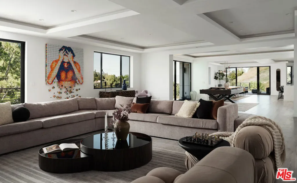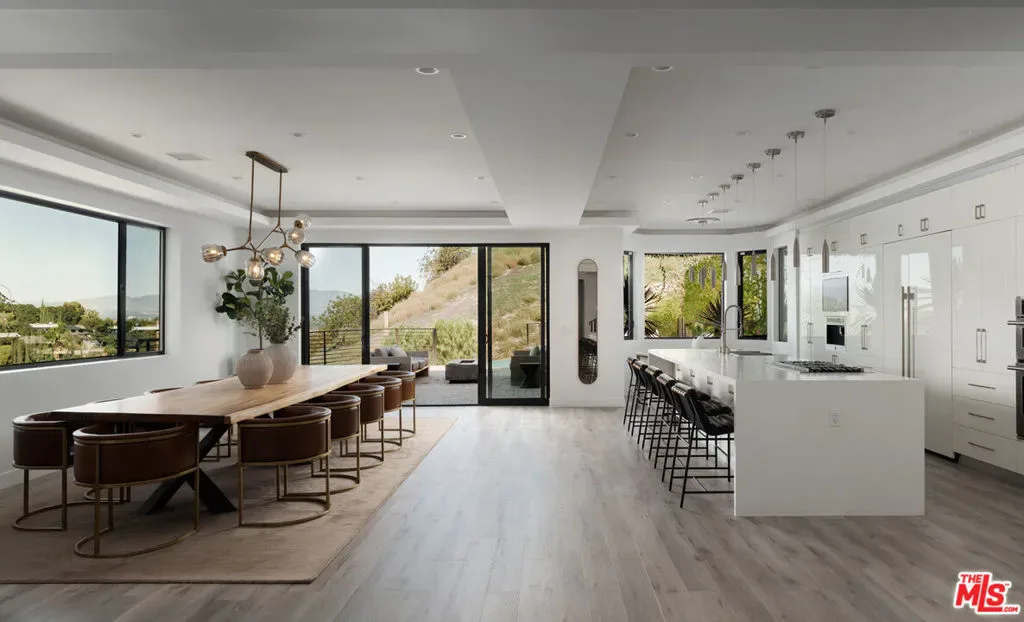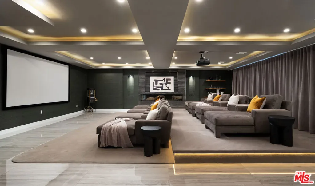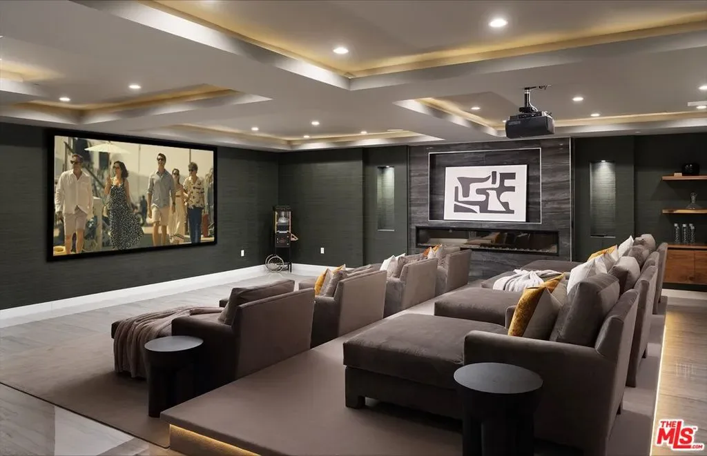 Perched high in the Sherman Oaks hills, this striking modern estate embodies design, performance, and luxury. Completed in 2020 and enhanced to perfection, the residence spans roughly 8824 square feet of open, light-filled living space framed by breathtaking mountain and city views. Every detail was envisioned for effortless entertaining, from the showpiece chef’s kitchen with an expansive island and floor-to-ceiling glass, to the outdoor terrace that evokes the ambiance of a five-star rooftop escape, complete with an infinity-edge pool, cascading waterfall, fire pit, and multiple lounge areas for relaxation and gatherings. Lifestyle amenities include a professional-grade home cinema with advanced automation, and a fully equipped gym integrated within a remarkable 10-car showcase garage. A private elevator connects all levels with ease. The primary suite offers a tranquil retreat with a wraparound terrace, spa-inspired bath with soaking tub, and a custom dressing area, all capturing sweeping valley panoramas. Secured by gated entry and comprehensive surveillance, this property ensures privacy and peace of mind while defining elevated California living through bold architecture, refined finishes, and flawless execution.