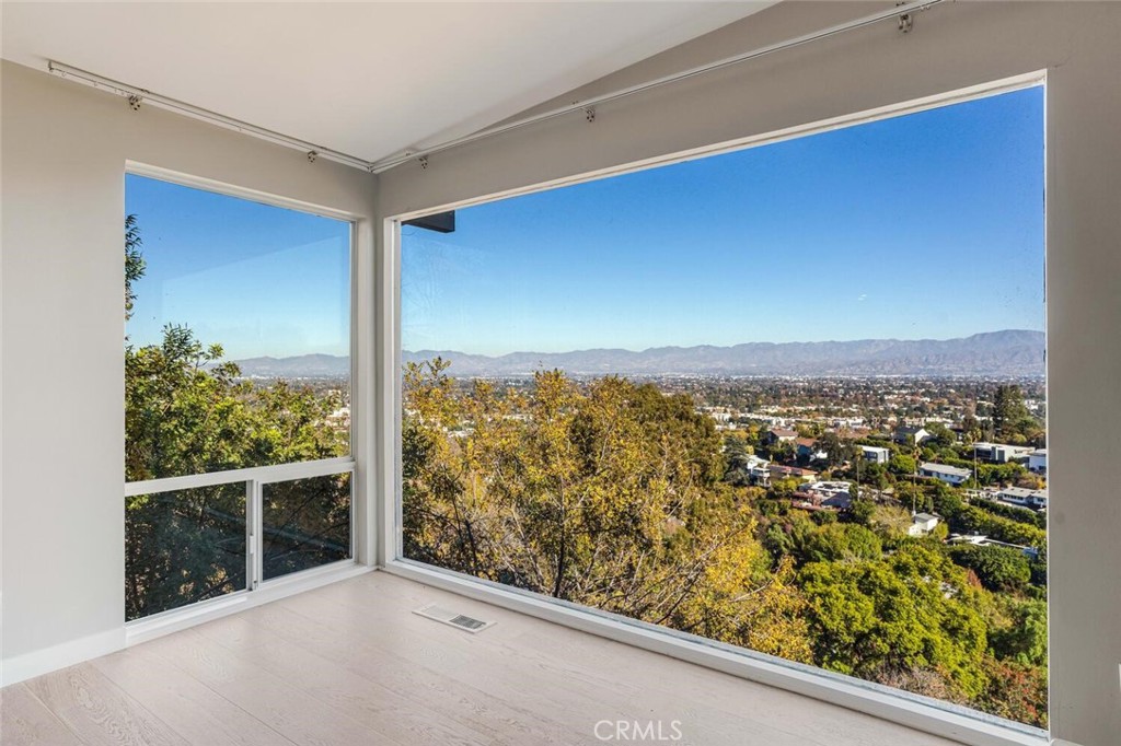 South of the Boulevard! Mid-Century home with amazing 270-degree unobstructed panoramic mountain, valley and canyon views from almost every room. Luxury living at the end of a quiet cul-de-sac. The gated and private grassy front yard leads to this bright and open living space. Enter through the double glass doors and experience the explosive jet-liner views. High exposed post & beam ceilings, stone fireplace, and wide plank wood floors run throughout most of this home’s interior plus a huge balcony overlooking the valley. The Formal Dining area is open to the Living Room and Kitchen and has a custom wet bar plus more of those views. The Chef’s Kitchen offers quartz counters, stainless steel appliances, upgraded cabinets and of course more of those outstanding views. There are 3 Bedrooms, 2 with views, including the Primary Bedroom Suite with a walk-in closet and spacious Primary Bathroom with quartz counters, double sinks, deep spa tub plus separate shower with multiple shower heads and seating. Detached bonus room is great for gym or additional storage, plus spacious 2-car garage. With a prime location in the hills above Sherman Oaks and easy access to Ventura Blvd shops and dining plus great access to Beverly Hills via Coldwater Canyon, this move-in ready lease residence is not to be missed! LANDLORD REQUIRES RENT TO BE PAID IN ADVANCE IN 6 MONTH INCREMENTS.