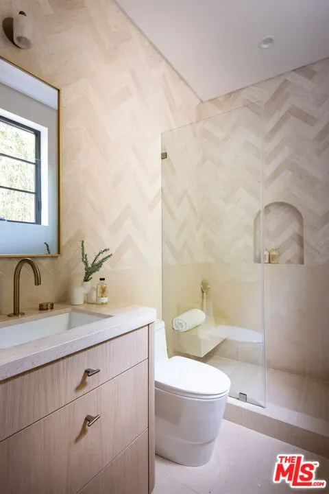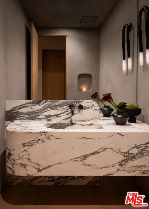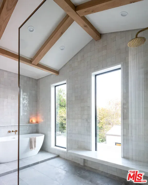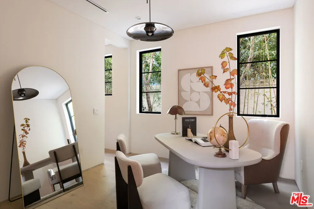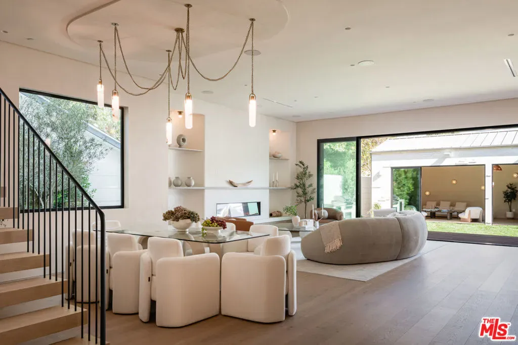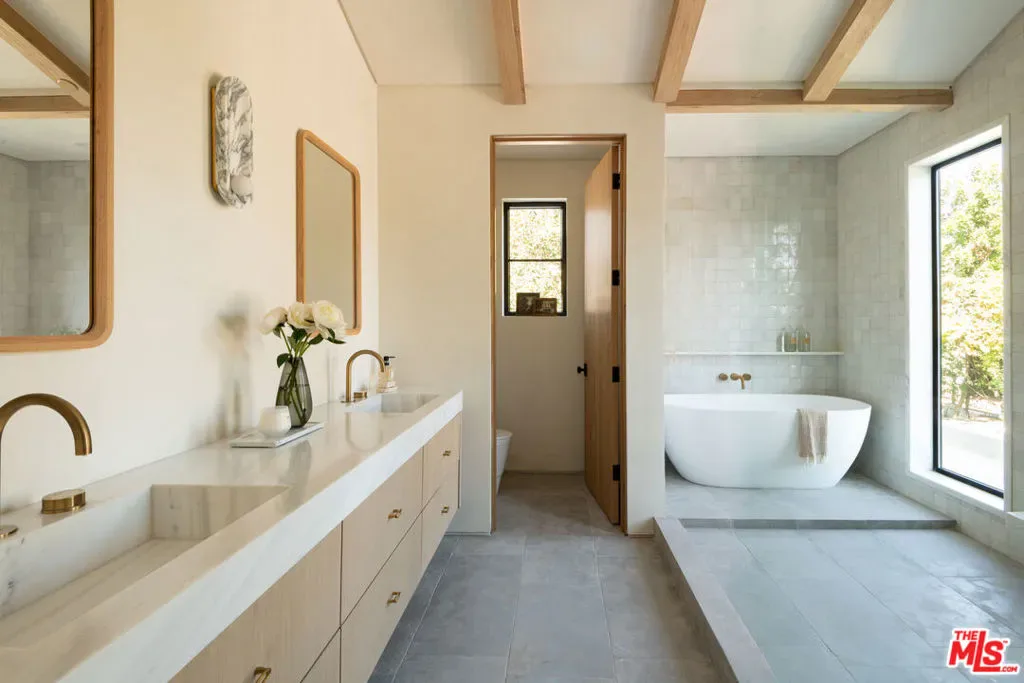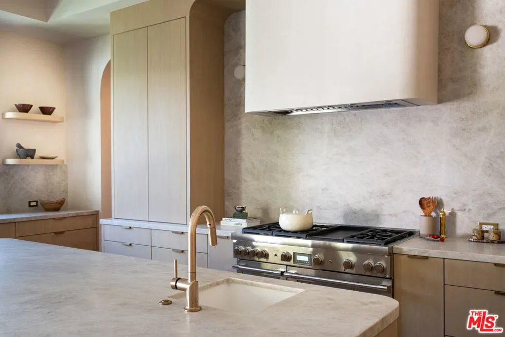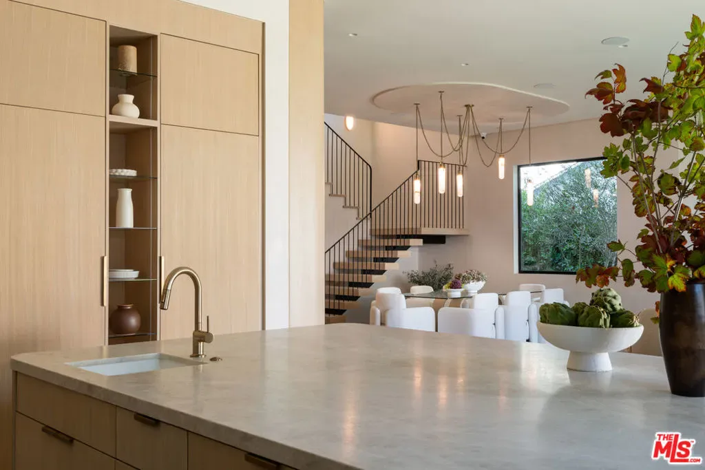Introducing a newly built Deco Revival inspired modern estate in the heart of Sherman Oaks, ideally located South of the Boulevard and moments from top restaurants, shops, and cafs. Crafted with elevated materials and refined organic texture elements, this residence blends timeless Art Deco elegance with contemporary California living. The exterior features natural stone, brick, and smooth stucco, creating a striking architectural presence. Once inside, custom oak cabinetry, hand-crafted oak ceiling beams, and European natural stone countertops set a sophisticated tone. Upon entering, the main floor unfolds with a seamless flow through spacious, open concept living. Natural light fills the space where expansive living and dining areas flow seamlessly into the gourmet kitchen. The chef’s kitchen is equipped with premium Thermador appliances, European stone countertops, bespoke fixtures, and a large island designed for cooking, gathering, and everyday living. Curved architectural lines and thoughtful lighting, elevate the ambiance with refined soft deco influence. A desirable first-floor ensuite bedroom provides flexibility for guests or a private office, while a spacious theater offers an ultimate cinematic experience. Upstairs, there are four additional ensuite bedrooms, including a luxurious primary suite with vaulted ceilings, custom walk-in closet, private balcony overlooking the outdoors and a spa-inspired bathroom featuring premium finishes and marble countertops. Thoughtfully designed for comfort and privacy, each bedroom enjoys its own beautifully finished ensuite bathroom and custom closets. Make your way outside to the backyard oasis, offering a resort-style pool and spa, outdoor BBQ island and room for alfresco dining and entertaining. The 1 bedroom, 1 bathroom ADU is the perfect place for extended family, friends who are visiting or your home studio.