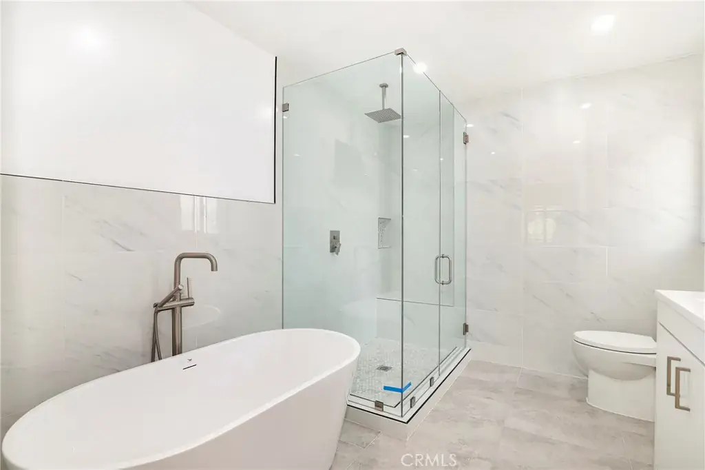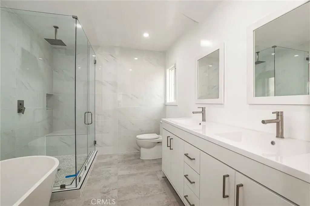 Welcome to 4321 Matilija Ave, Unit #1 – a rare 3-bedroom, 2.5-bath corner townhome in the heart of Sherman Oaks with a large private yard and two side-by-side parking spaces with private and overhead storage.This home has been beautifully updated throughout. The primary suite features soaring ceilings, a walk-in closet, balcony, and a fully remodeled en-suite with new porcelain tile, marble shower with bench, double vanity, bathtub, Kohler toilet, recessed lighting, and fresh paint. The guest bedroom includes new waterproof laminate flooring and fresh paint with a completely remodeled en-suite bathroom with porcelain and marble finishes, floating vanity, and new fixtures. Additional upgrades include new HVAC and ducts in the unit controlled by a Nest thermostat, new upstairs smoke detectors, and freshly painted interiors. The downstairs offers a spacious living/dining area with hardwood floors, a galley kitchen with refrigerator, laundry room with washer/dryer, and a versatile bedroom/office/den that opens to the private patio. This 28-unit community includes a pool, spa, BBQ area, and landscaped grounds. HOA dues cover water, trash, landscaping, exterior maintenance, fire and earthquake insurance, and security cameras. Prime Ventura Blvd location near dining and shopping, highly pedestrian-friendly (EPA score 19.2/20), and within Dixie Canyon Elementary and Louis Armstrong Middle School boundaries (per LAUSD). Move-in ready and offering the perfect blend of style, convenience, and privacy. Some Photos are virtually staged