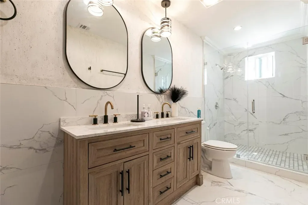 This spacious home boasts 5 bedrooms, 6 bathrooms, plus a bonus room, offering ample flexibility for a home office, gym, or guest suite. All bathrooms have been thoughtfully renovated with stylish tile flooring, contemporary fixtures, soaking tubs, and walk-in showers.