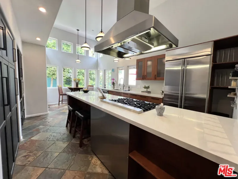 Nestled in the charming and peaceful community of Sierra Madre, just blocks from its quaint town center filled with boutique shops, cozy cafes, and local dining, this beautifully remodeled home offers the perfect blend of comfort, style, and functionality. This exceptional 4-bedroom, 3-bath residence with a spacious studio has been thoughtfully upgraded throughout. Recent improvements include a new roof (2025), a 240-volt EV plug, fiber optic wiring, and a fully integrated TV and speaker system with Apple compatibility. The light-filled kitchen features high ceilings, abundant windows, newer cabinetry with pull-out drawers, a pantry, and a dedicated coffee station. Premium appliances include a 6-burner Thermador range, Thermador dishwasher, GE Monogram refrigerator, and built-in microwave, perfect for both everyday living and entertaining. Each bedroom offers unique character, with stylish finishes such as barn-style closet doors, ceiling fans, and elegant fandeliers. The primary suite is a true retreat, complete with a walk-in closet and French doors opening to a private balcony overlooking the serene backyard. The spa-inspired primary bath includes a soaking tub, oversized shower, illuminated mirrors, and thoughtful storage, including a built-in full-length mirror and laundry chute. A striking spiral staircase leads to a versatile upper-level studio filled with natural light, ideal for a creative workspace, gym, or retreat. This level also includes a private office with a vintage desk, a half bath, and an expansive laundry room with generous storage, a stackable GE washer/dryer, a tankless water heater, a utility sink, and a pull-out hanging system. Step outside through French doors into a professionally landscaped backyard designed for relaxation. Enjoy peaceful moments by the running pond and charming bridge, or gather around the firepit in this tranquil outdoor setting. With thoughtful upgrades, flexible living spaces, and an unbeatable location, this is truly a must-see home.